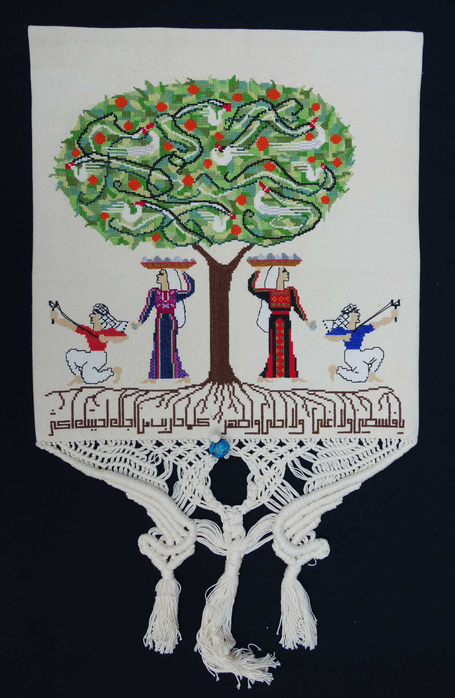 Factory woven cloth hand embroidered (cross stitch) macrame (2)