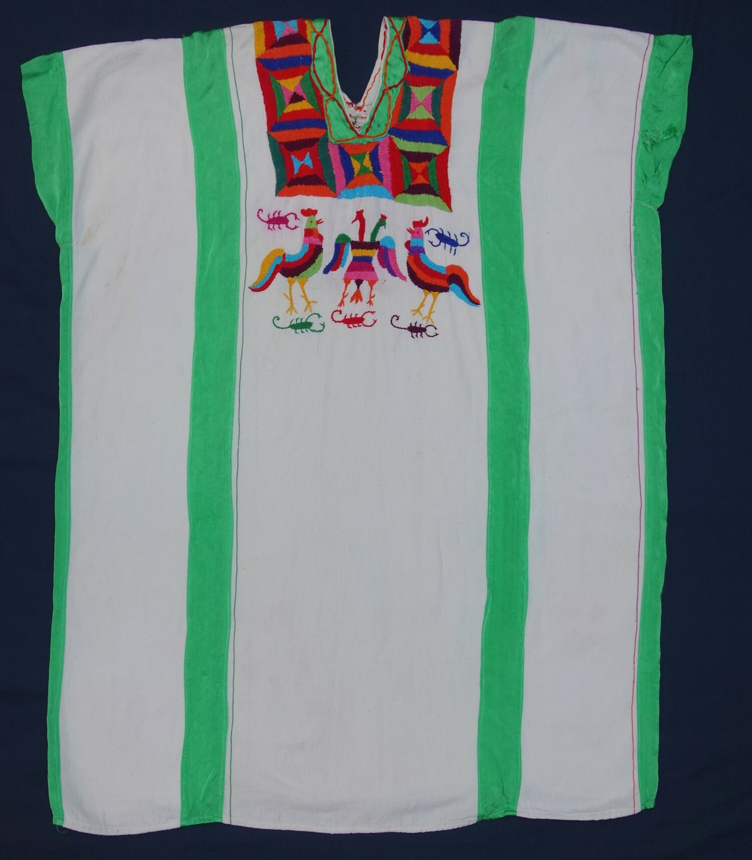 Factory woven cotton ground with hand embroidery using the acrylic thread. (1)