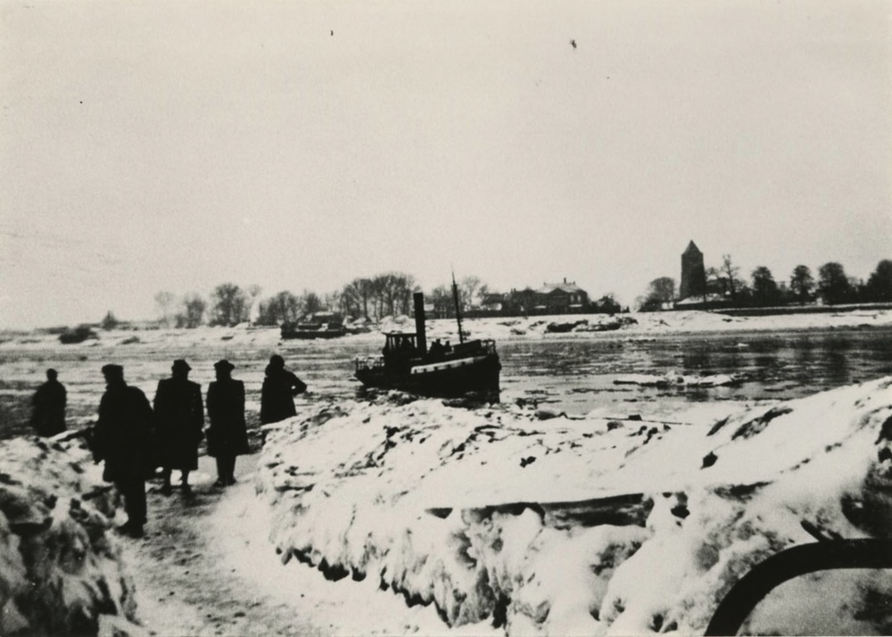 Ijspad naar het veer Tiel-Wamel aan de Wamelse kant,...