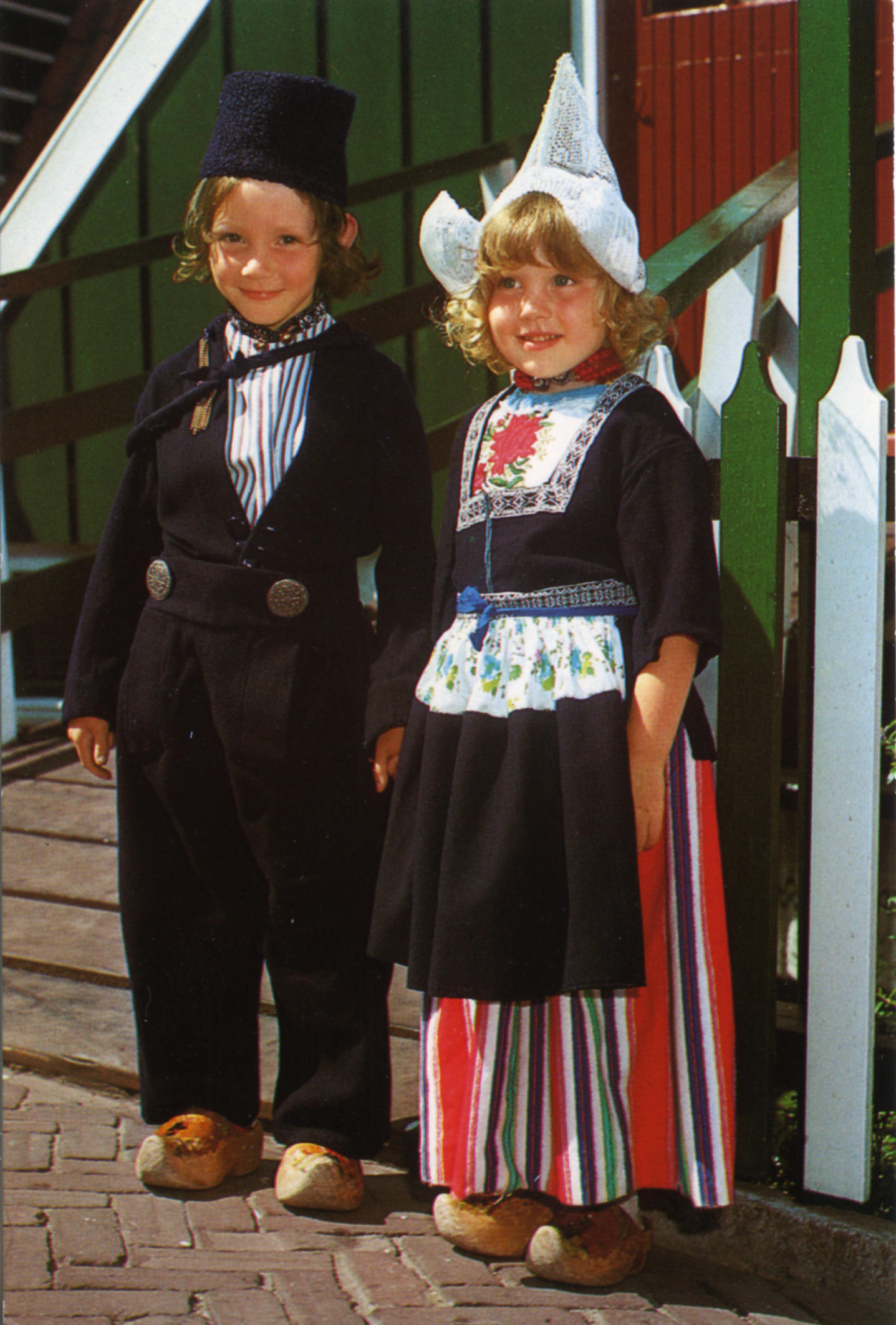 Jongens en meisjes in Volendammer dracht tijdens het...