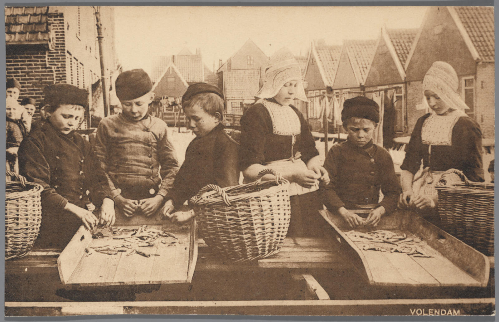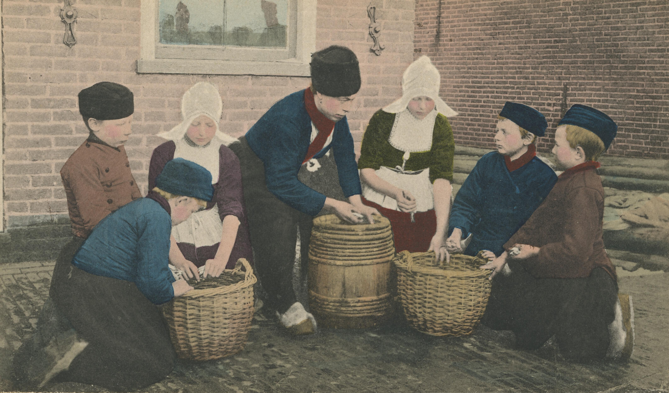 Jongens en meisjes in Volendammer dracht verwerken a...