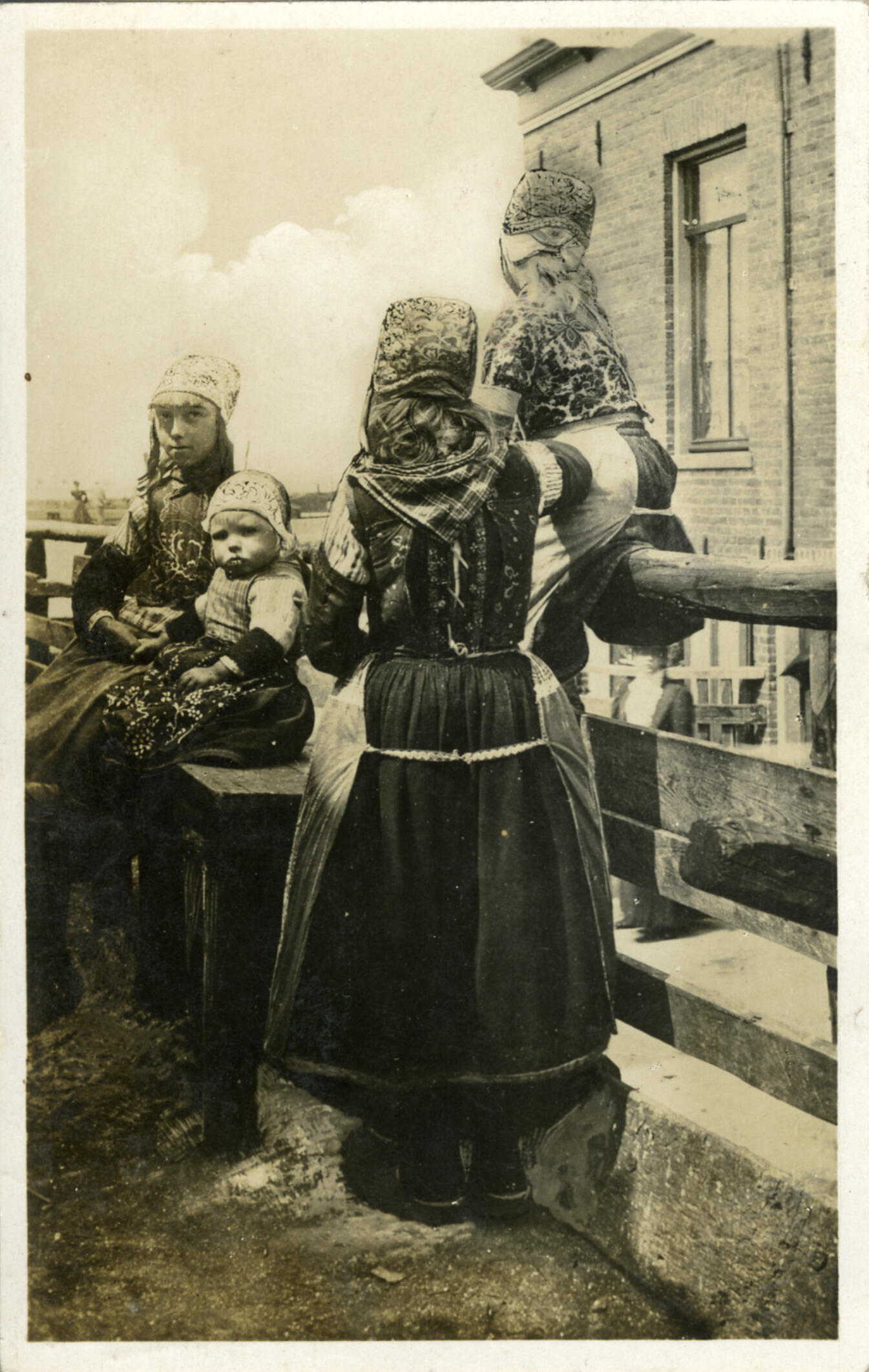 Vrouwen en kinderen in de dracht uit Huizen van circ...