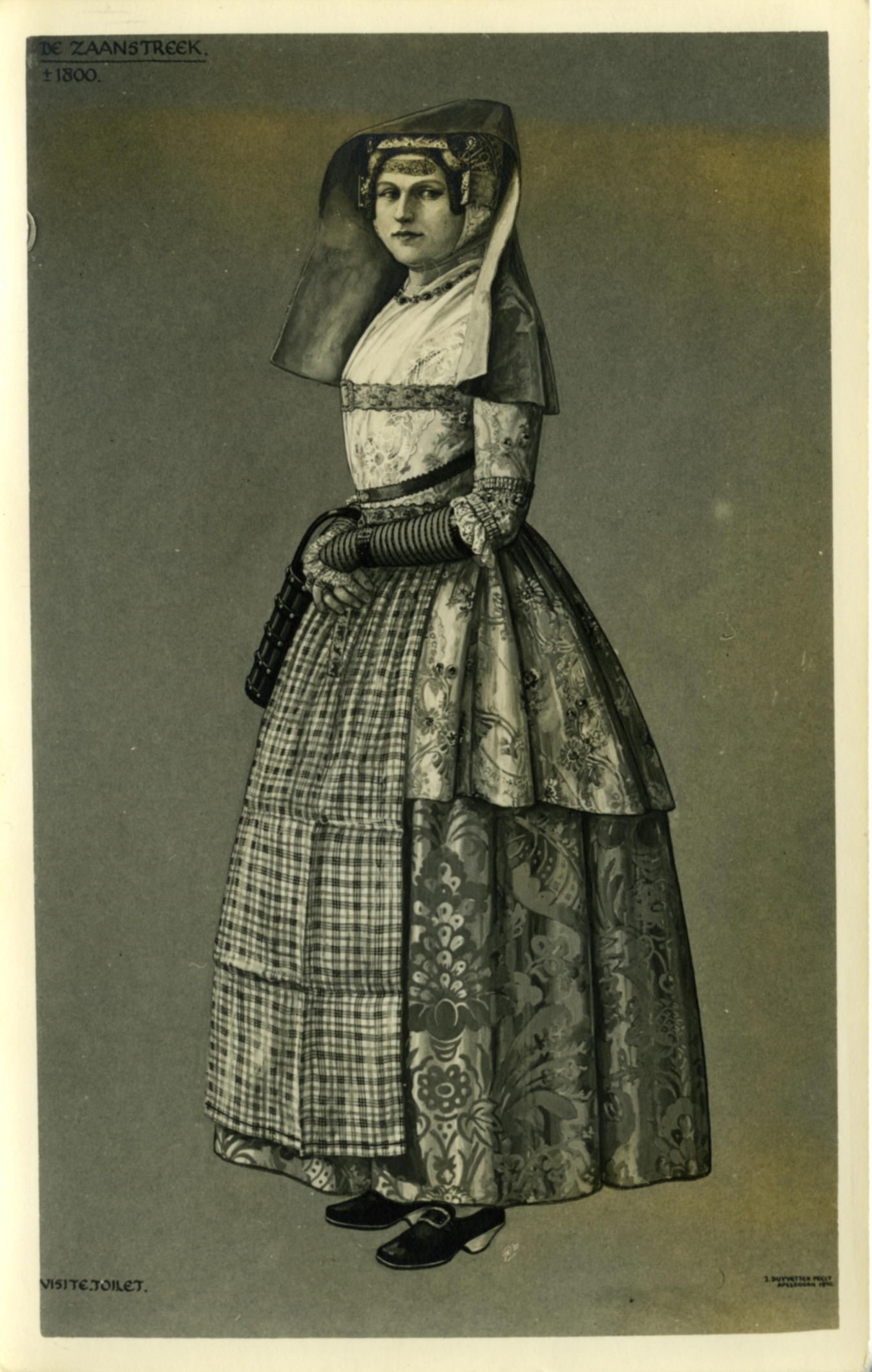 Vrouw in dracht uit de Zaanstreek van circa 1800 (an...
