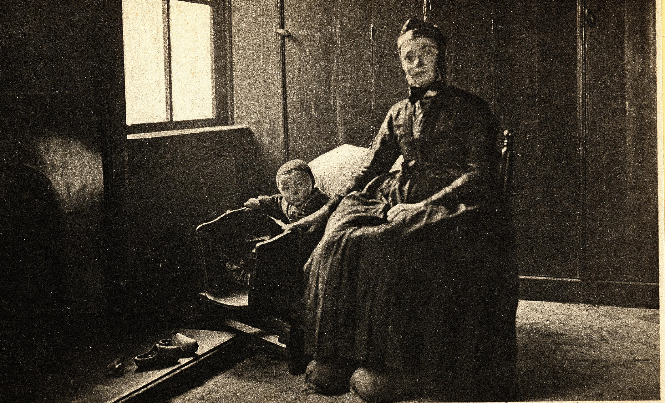 Vrouw en kind bij wieg, Staphorst, 1890–1940 (ansich...