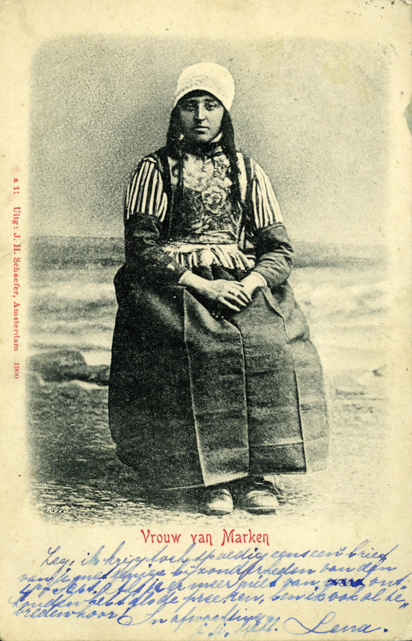 Vrouw in Marker streekdracht, 1896-1905 (ansichtkaart)