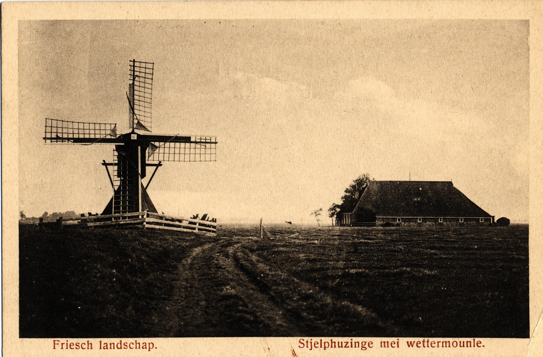 Spinnenkopmolen en boerderij in Friesland, circa 190...