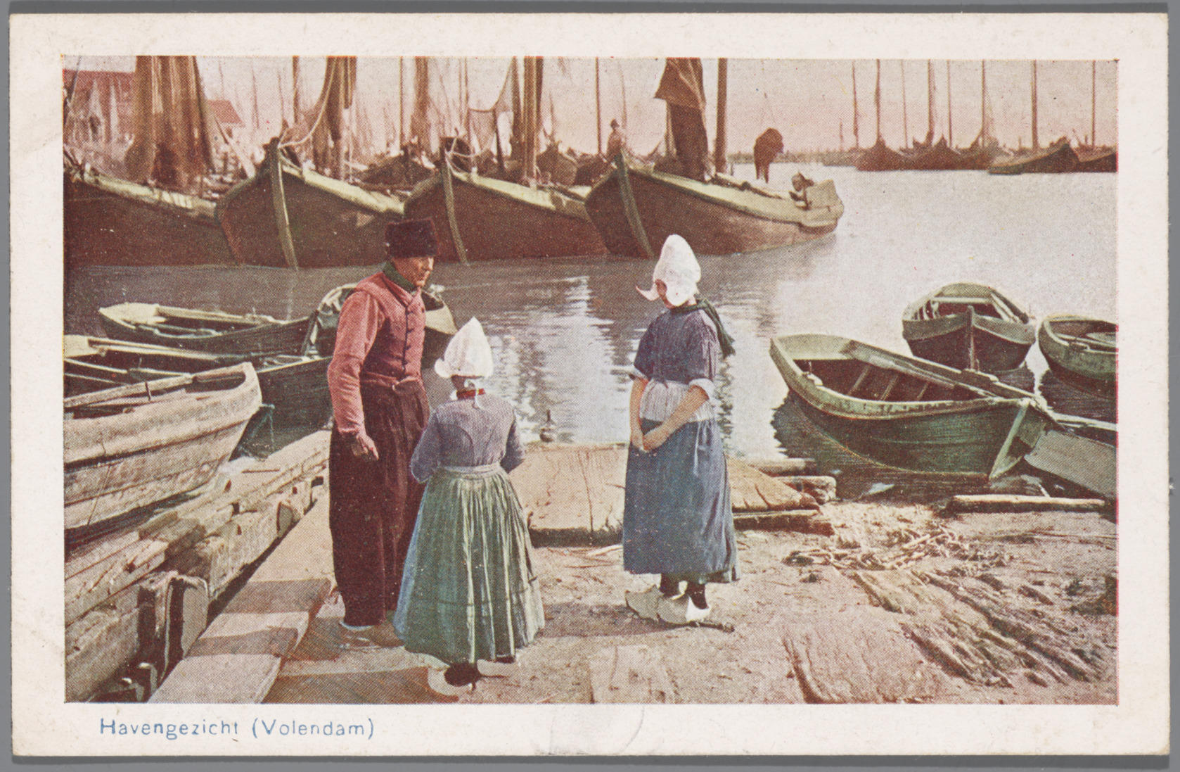 Man en twee meisjes in Volendammer dracht aan de hav...