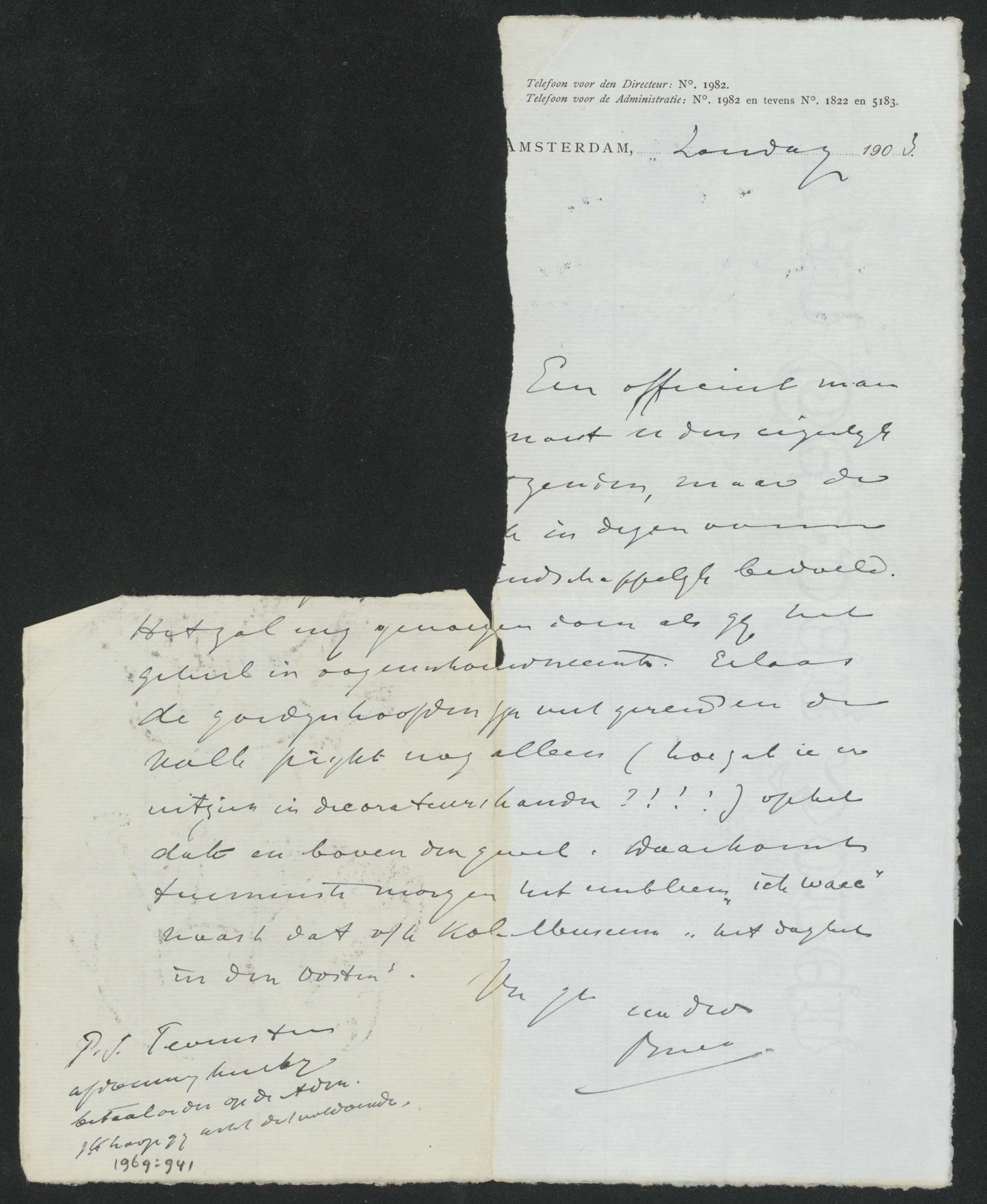 Kort briefje aan Ph. Zilcken over afdrukken van etsp...