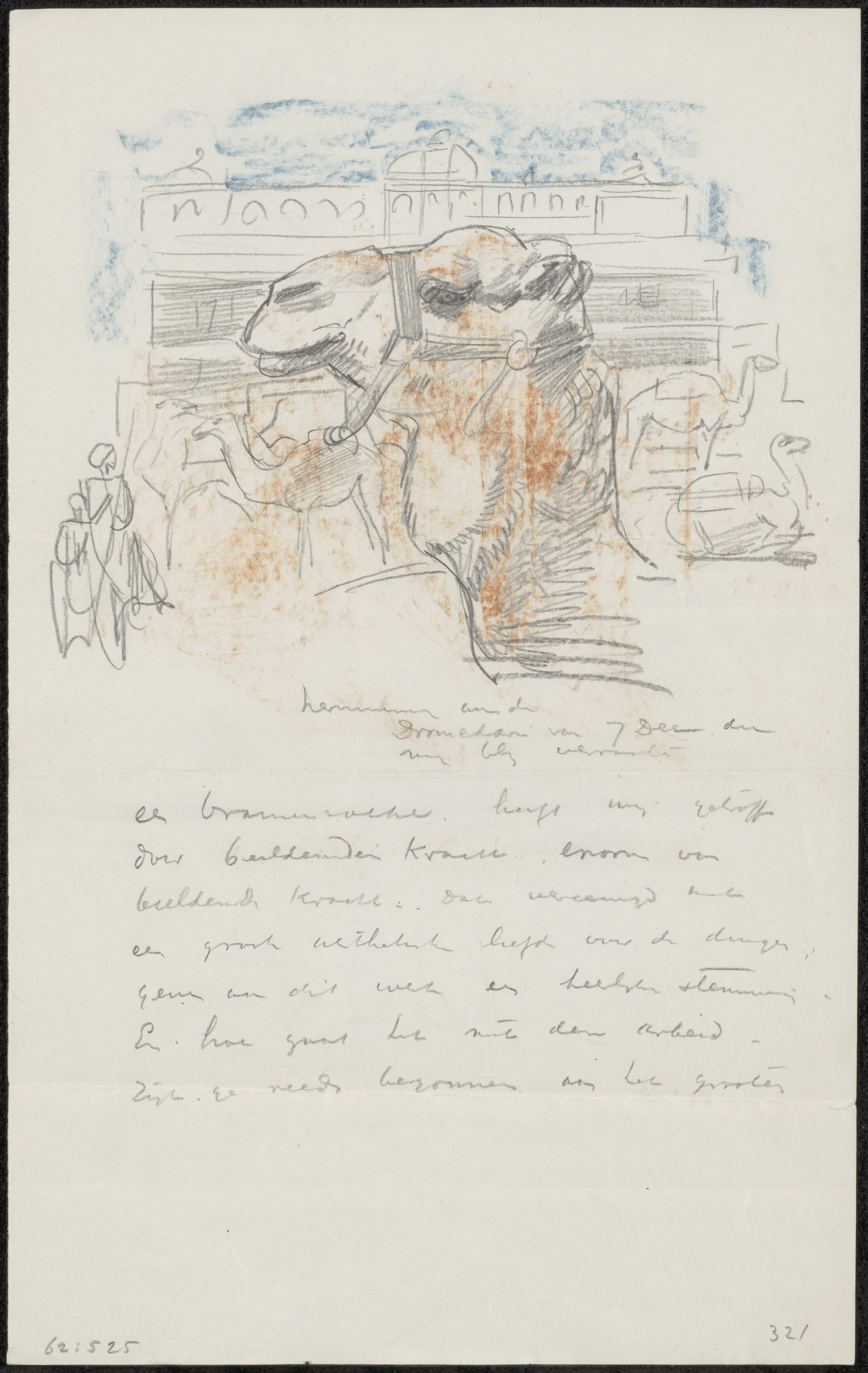 Brief met schetsen van koppen, honden en paard