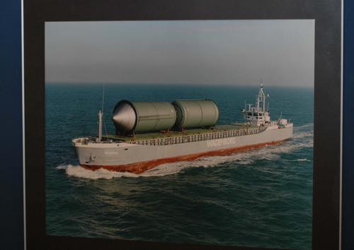 foto van ms Markborg gesleept op het IJsselmeer door...