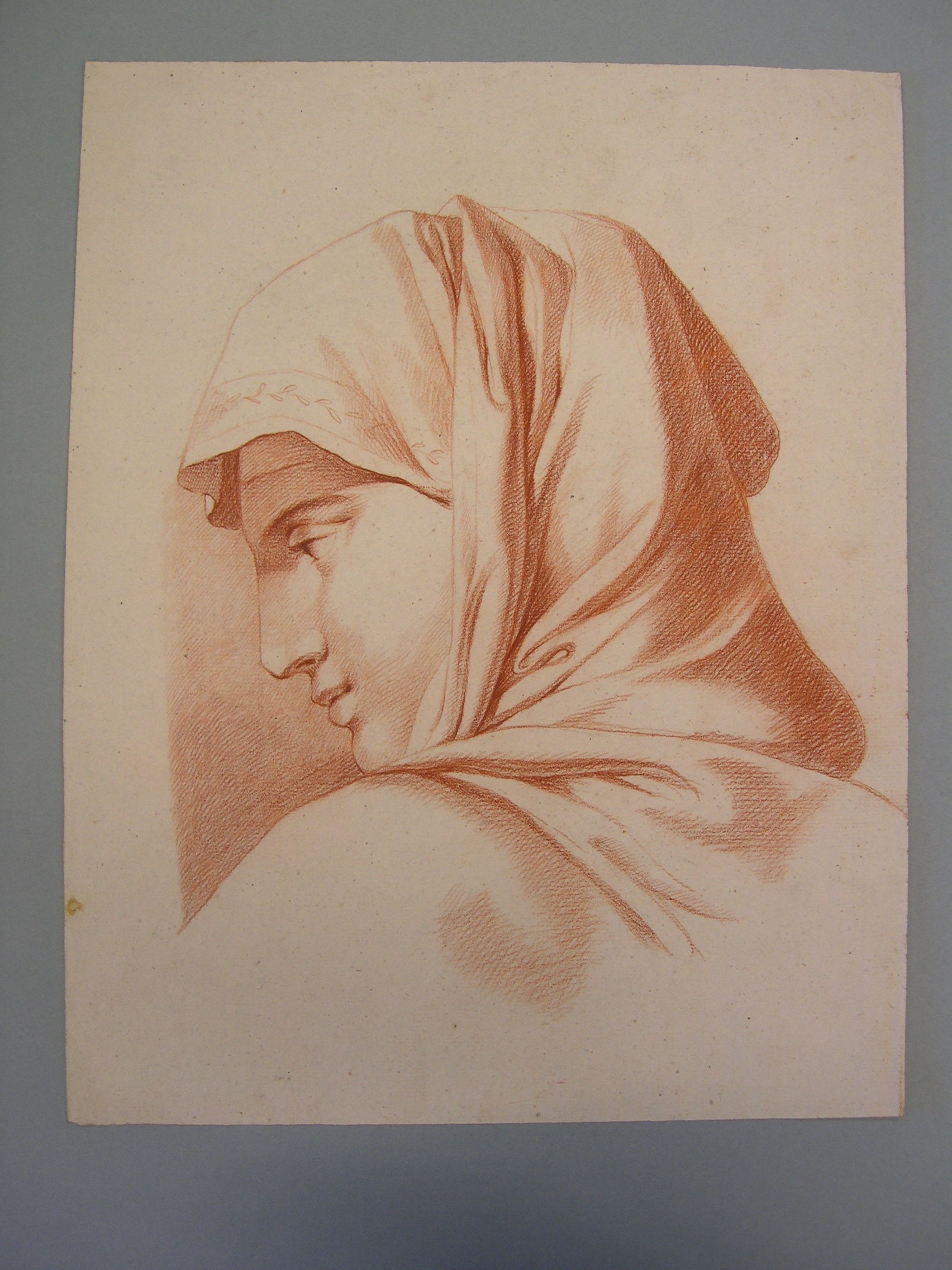 Portrettekening van een vrouw met een hoofddoek