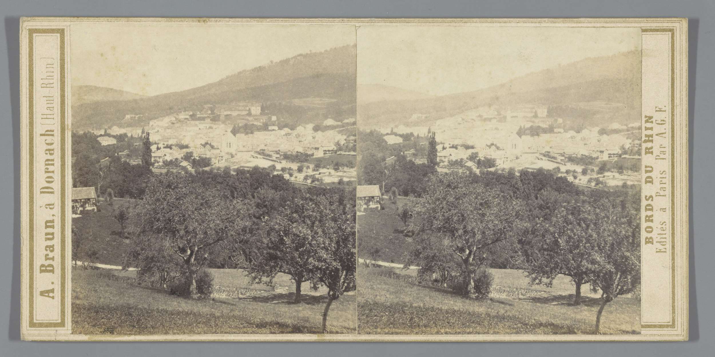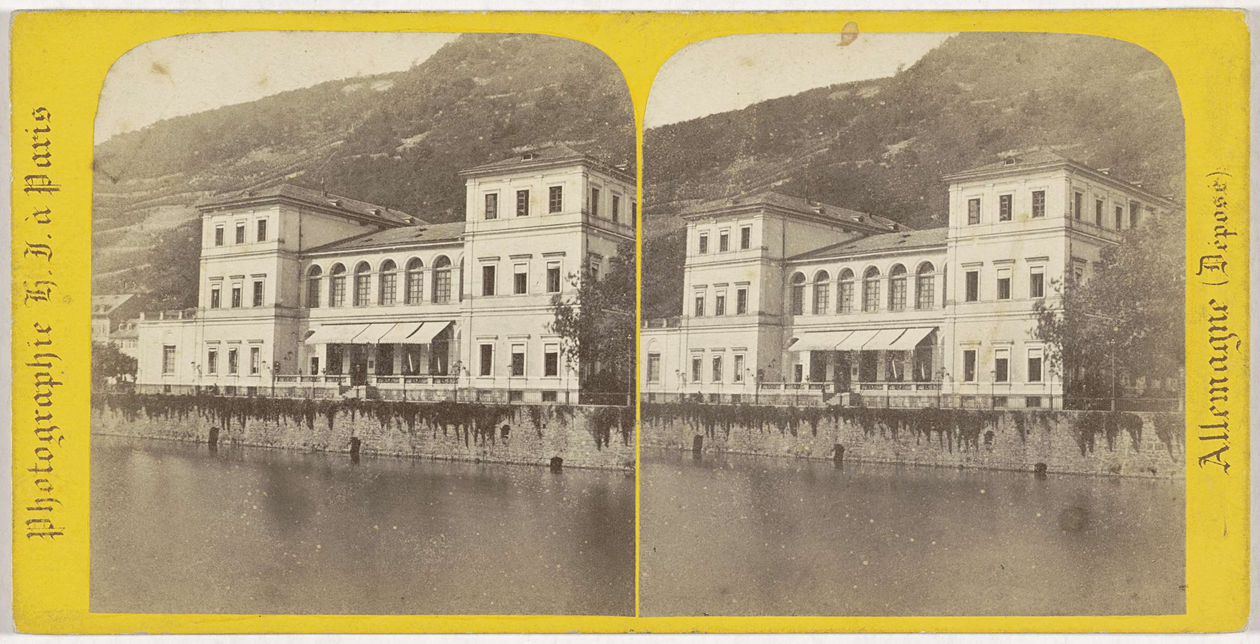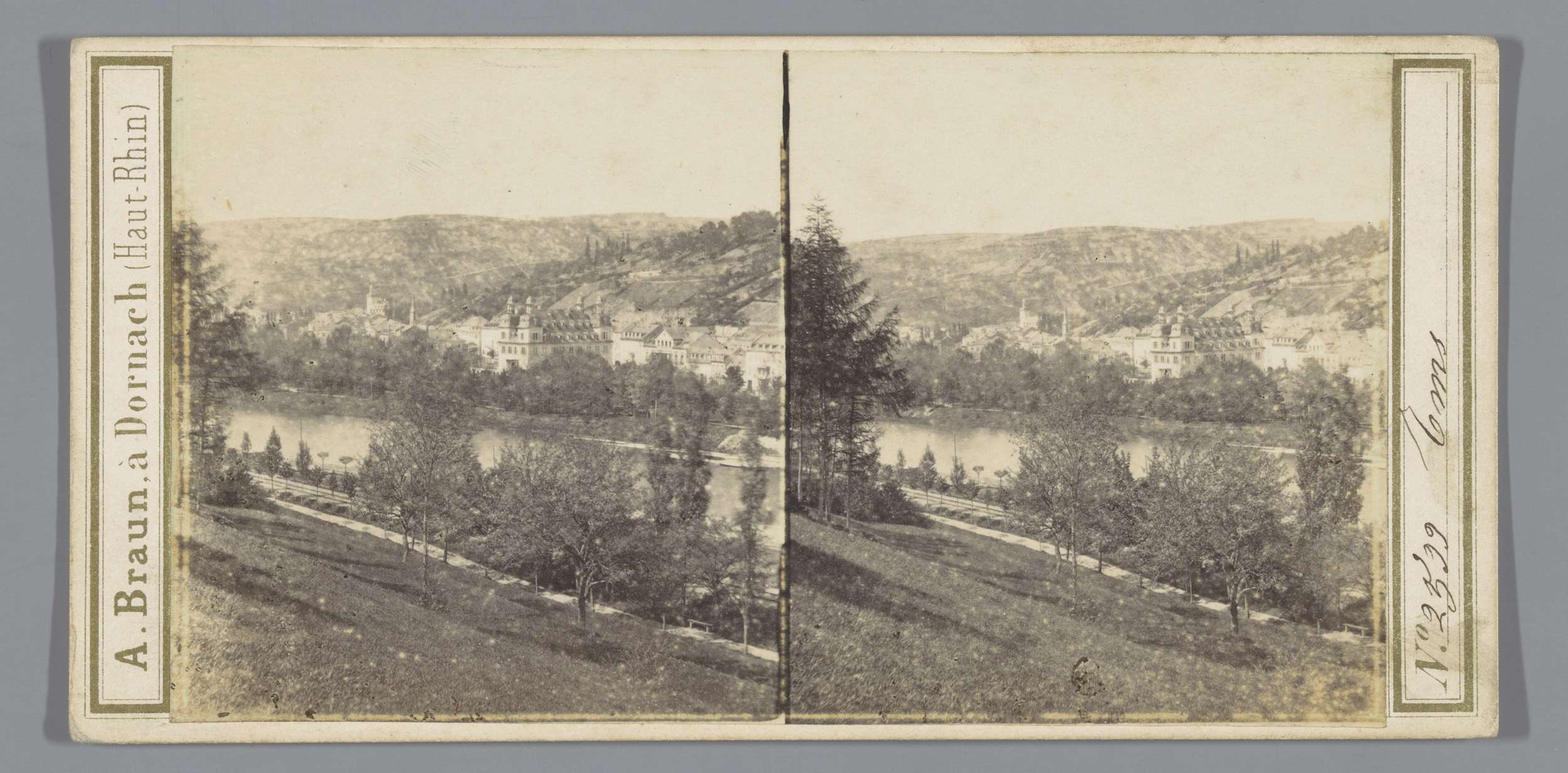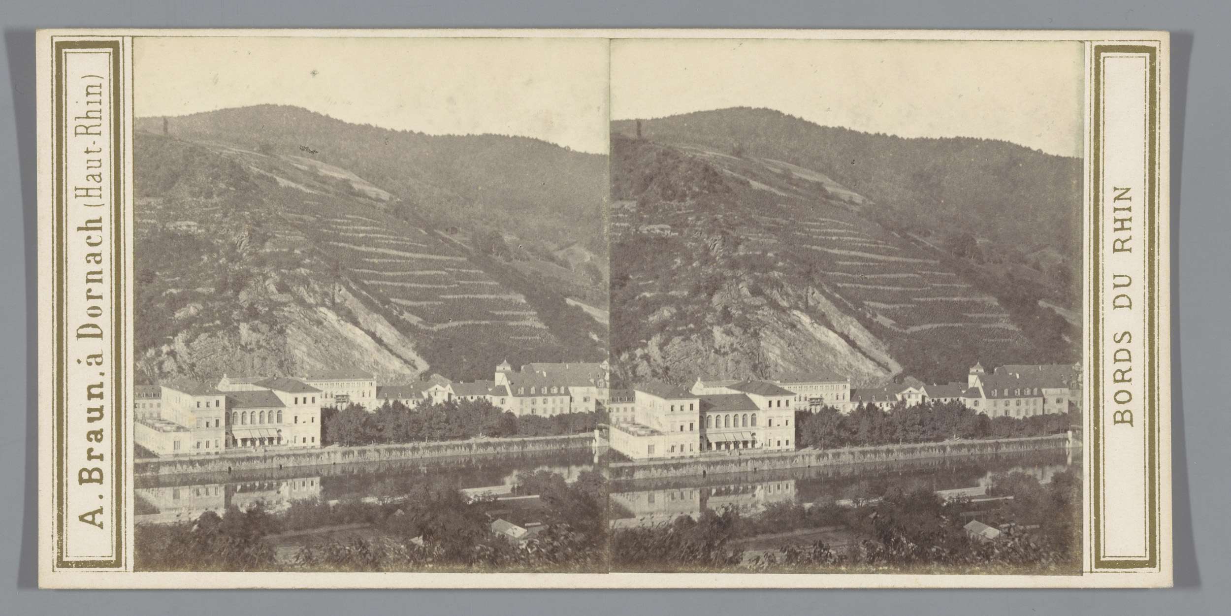 Gezicht op een stad langs de Rijn, mogelijk Baden-Ba...
