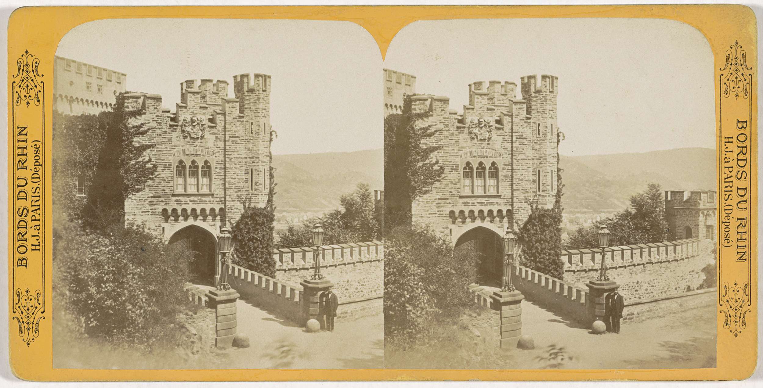 Gezicht op de Rijn. Langs de oever een kasteel