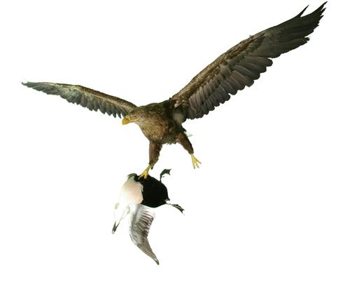 Opgezette vogel: Zeearend met geslagen Eidereend