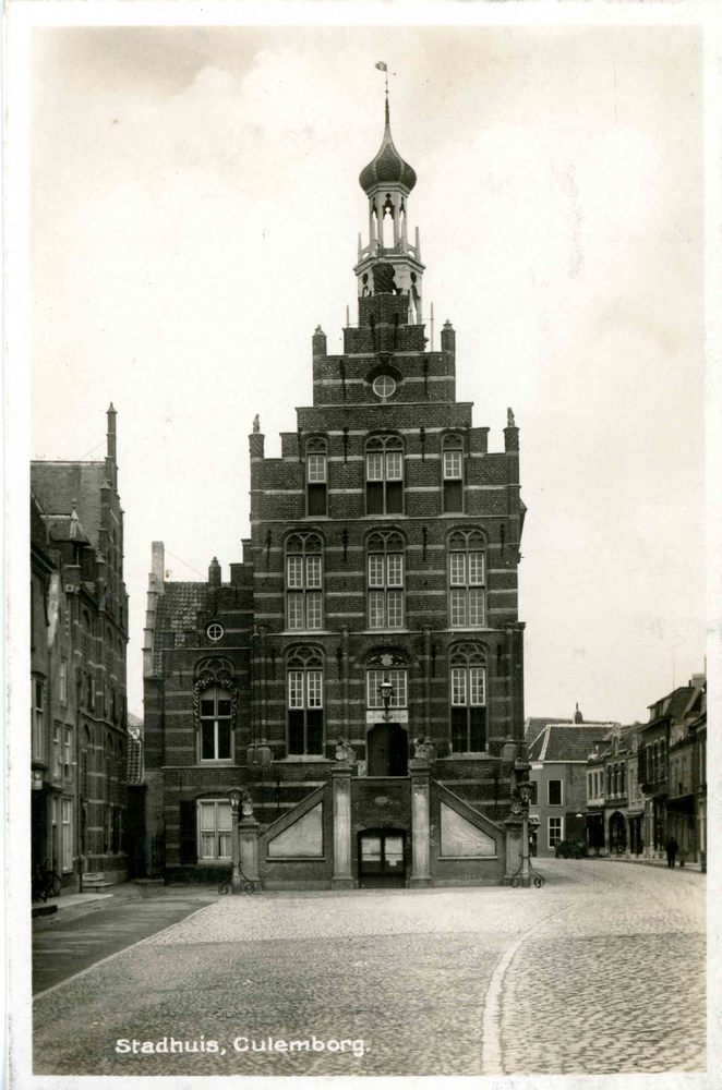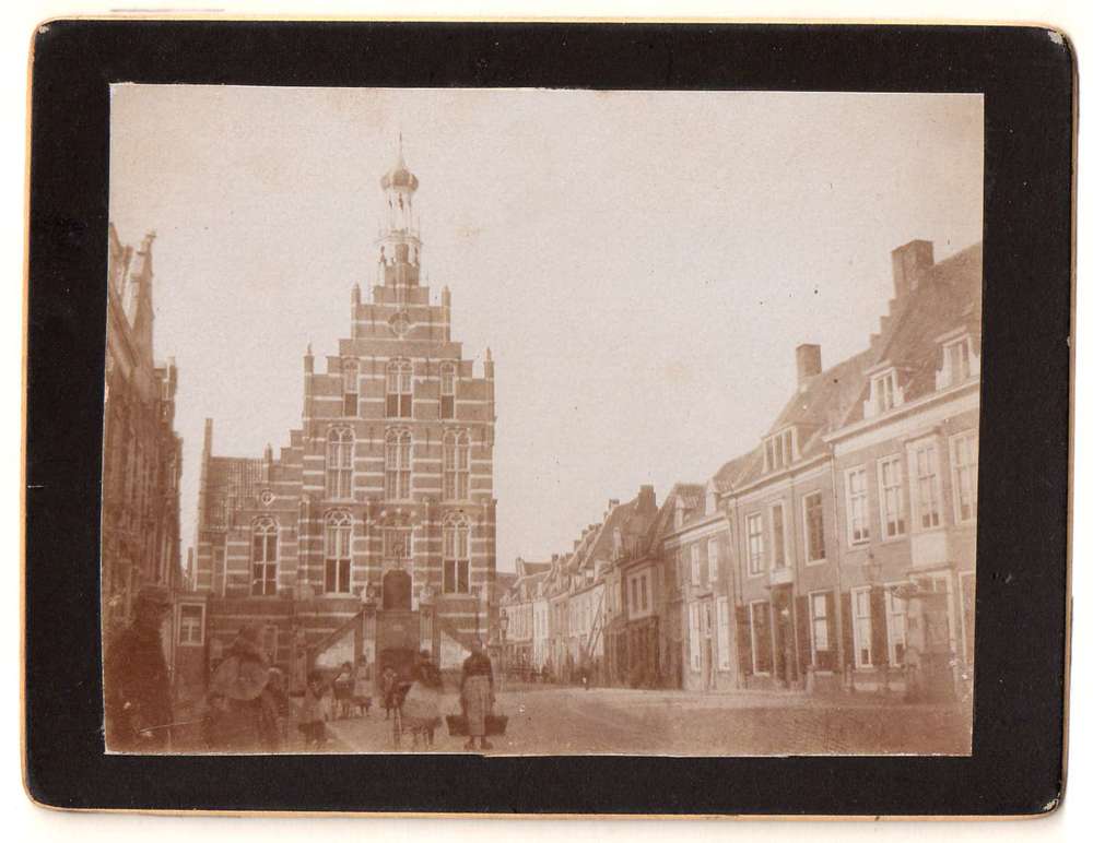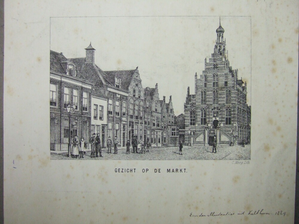 Foto, voorstellende de Markt met stadhuis te Culembo...