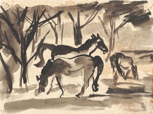 3 Paarden in een bomenlandschap