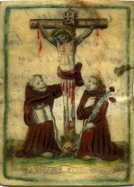 Franciscus en Antonius van Padua geknield bij het kruis