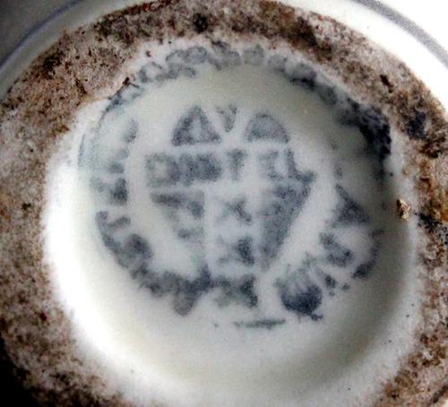 Hennekens delfts blauw kruikje met oor en stop met k...