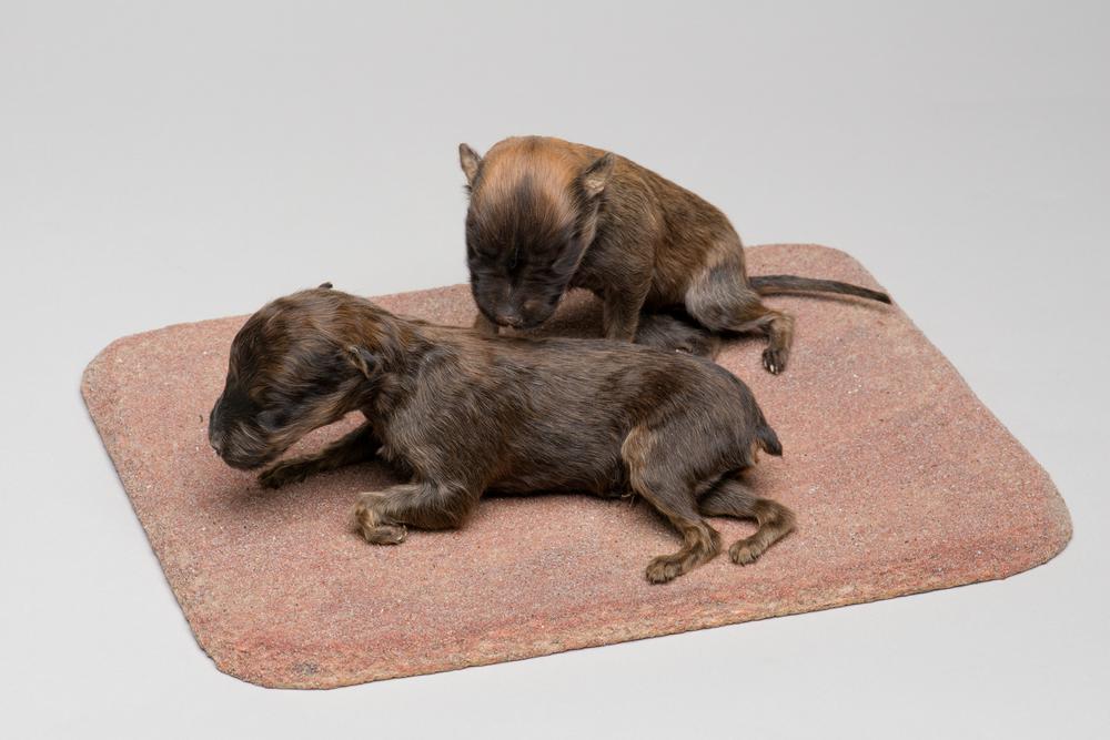 Droogpreparaat van twee pups van de huishond