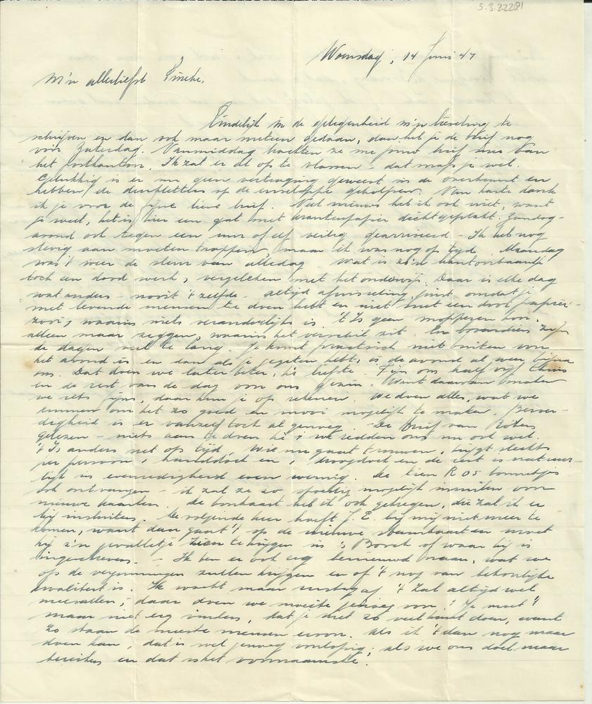 Brief van Antoon Jeuken aan verloofde, 14 juni 1944