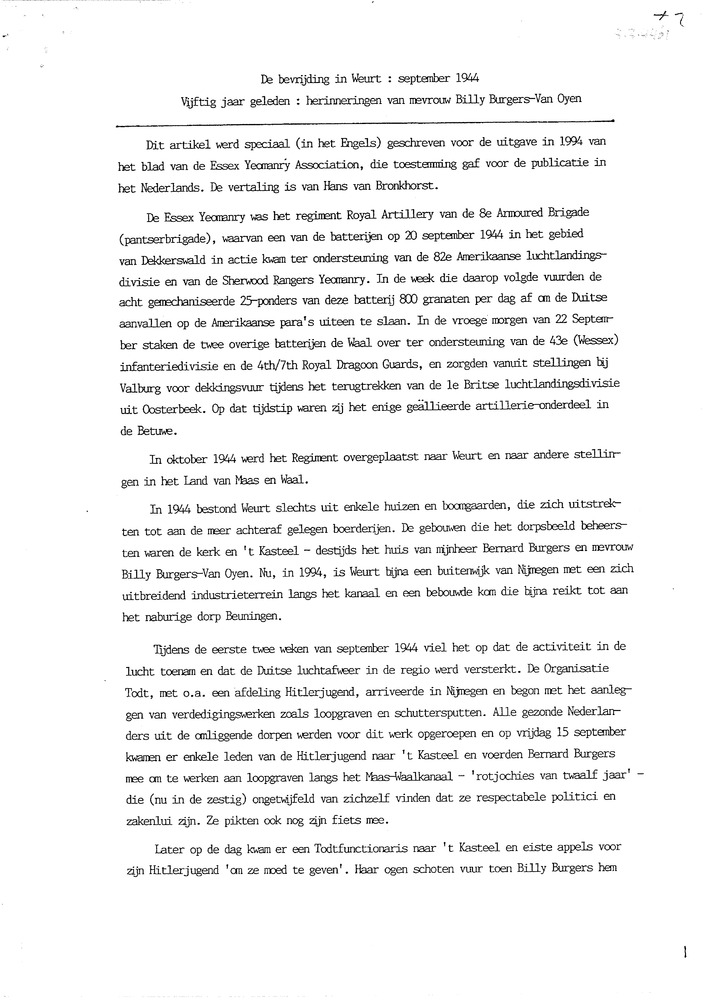 Kopie : De bevrijding in Weurt : september 1944, vij...