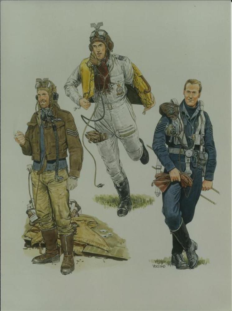 tekening: Volstad; drie leden van de Royal Air Force...