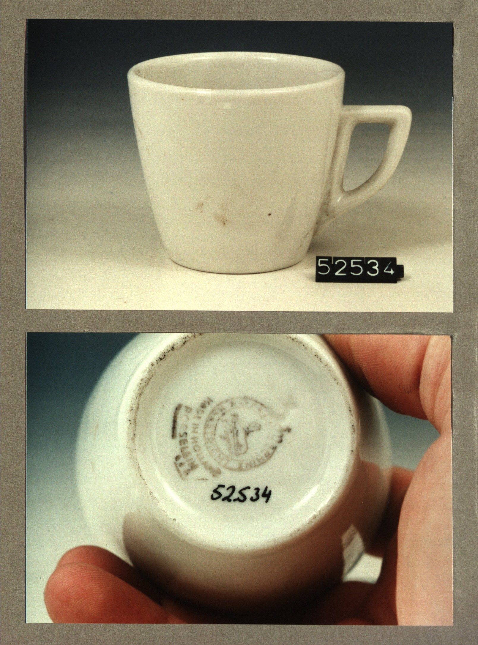 Kop met opschrift, model P met decor Gebouw H.U.Z.