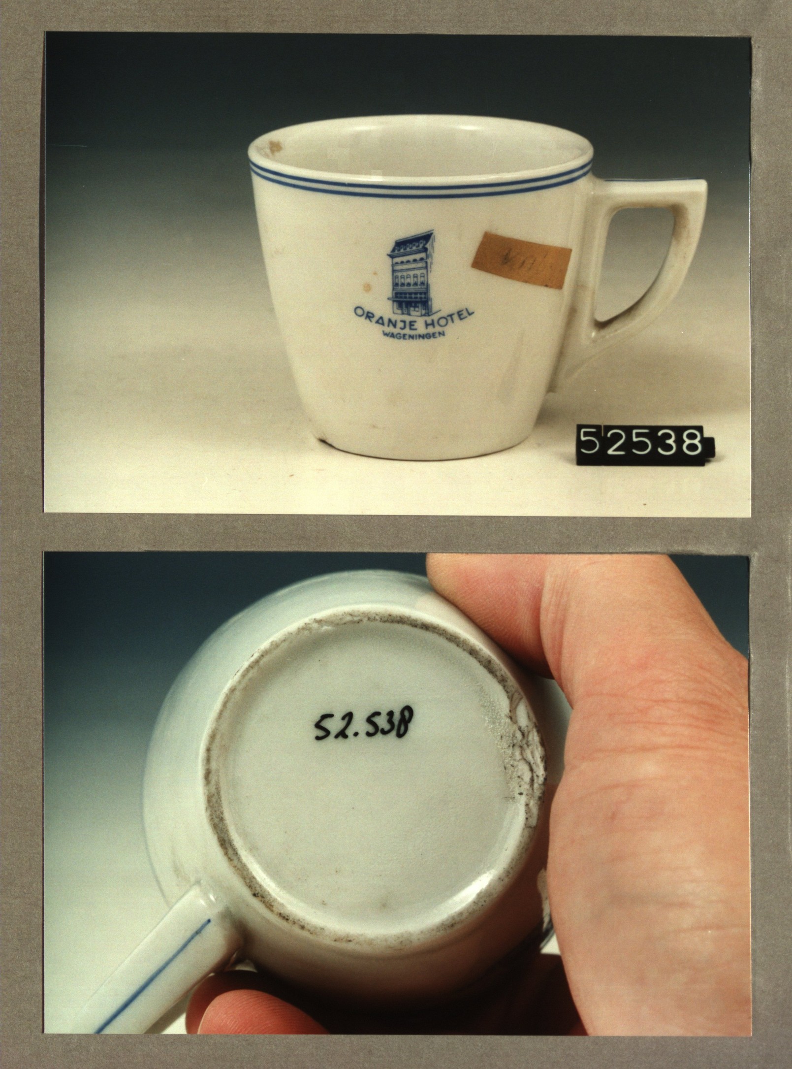 Kop met opschrift, model P2 met decor Oranje hotel W...