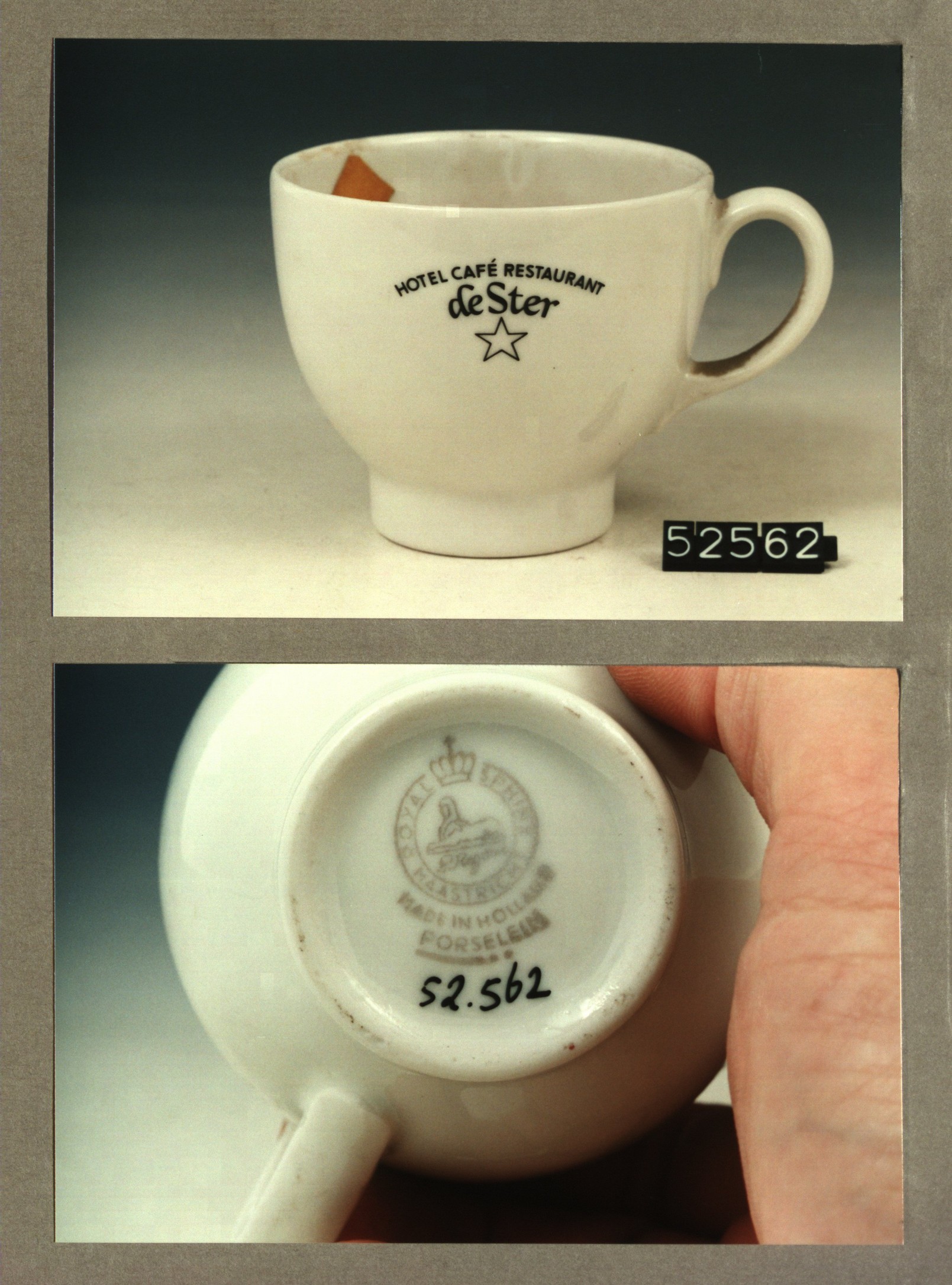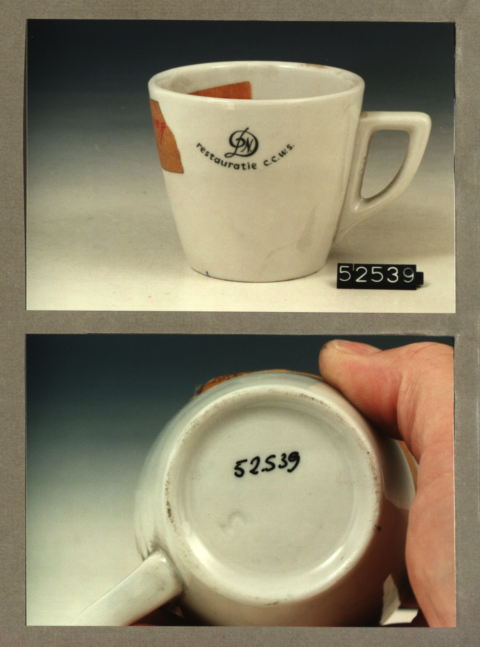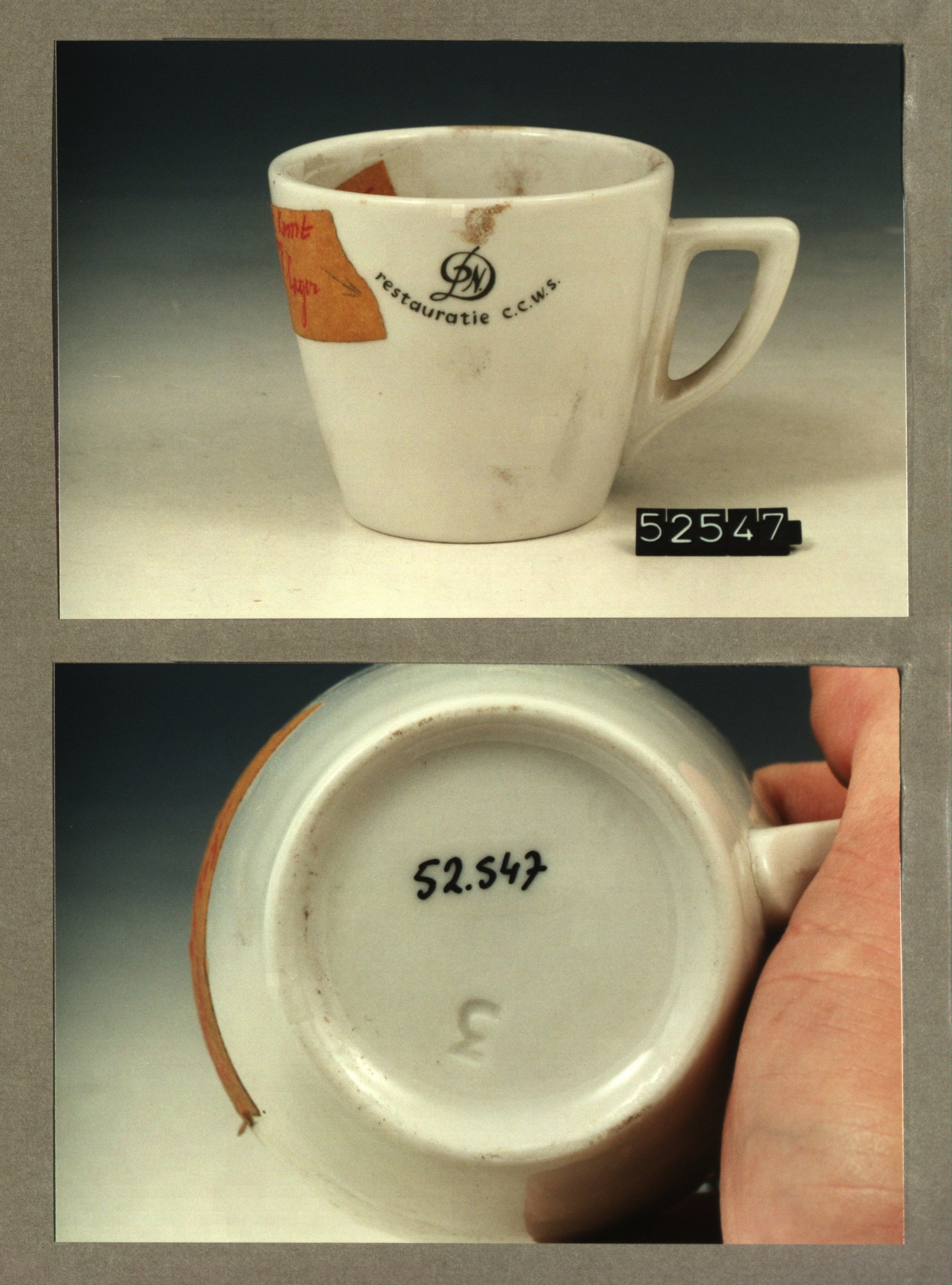 Kop met opschrift, model P2 met decor Restauratie C....