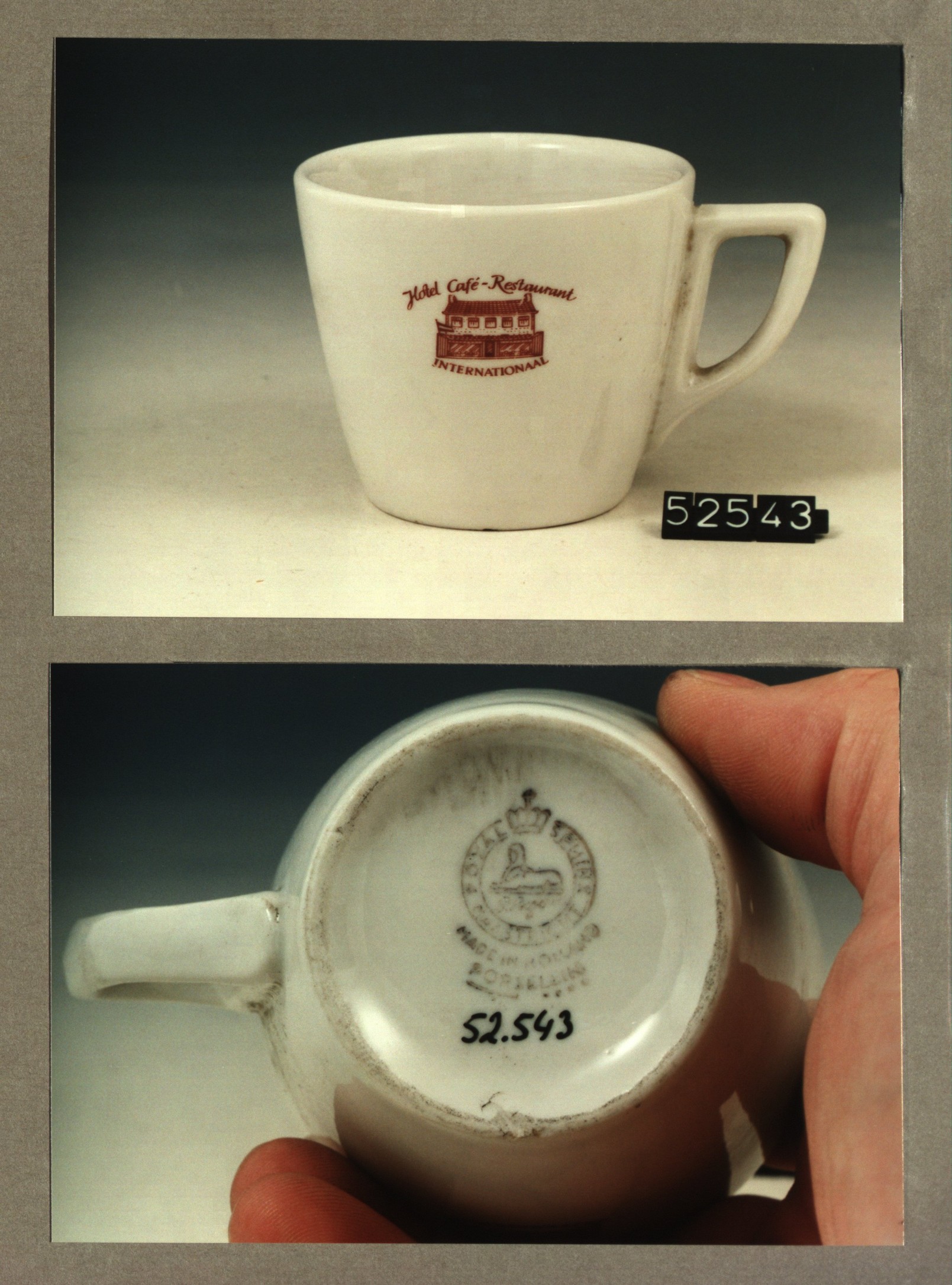 Kop met opschrift, model P met decor Internationaal ...