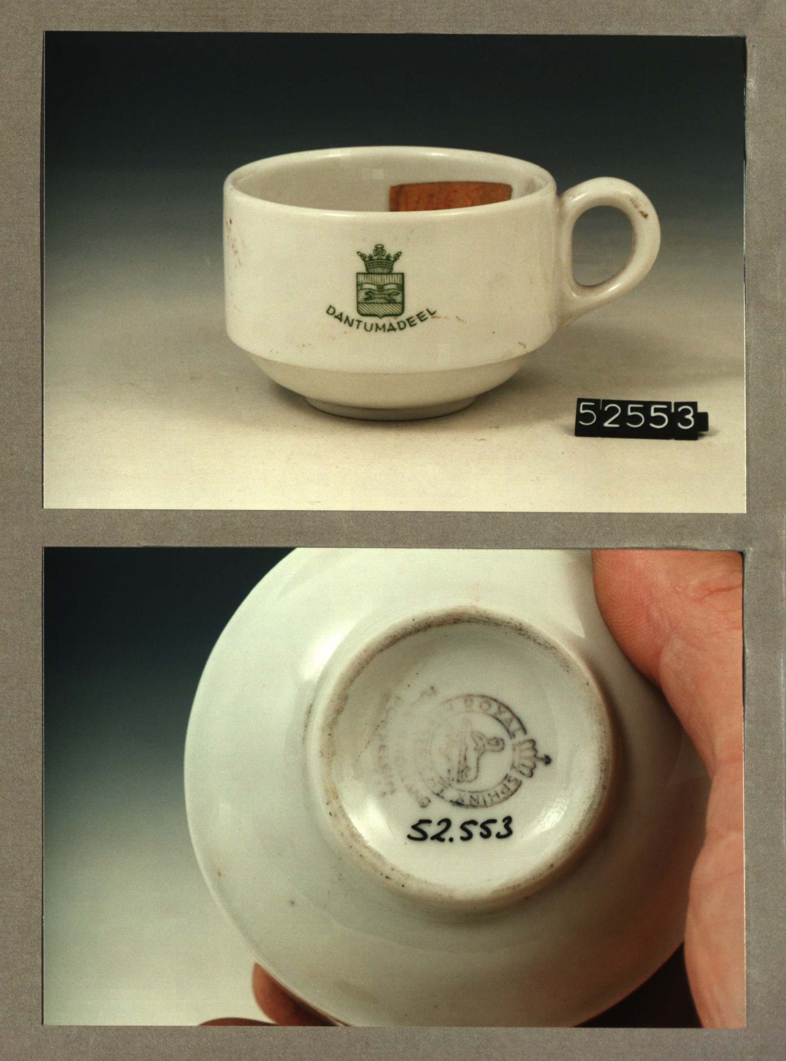 Kop met opschrift, model A met decor Gemeente Dantum...