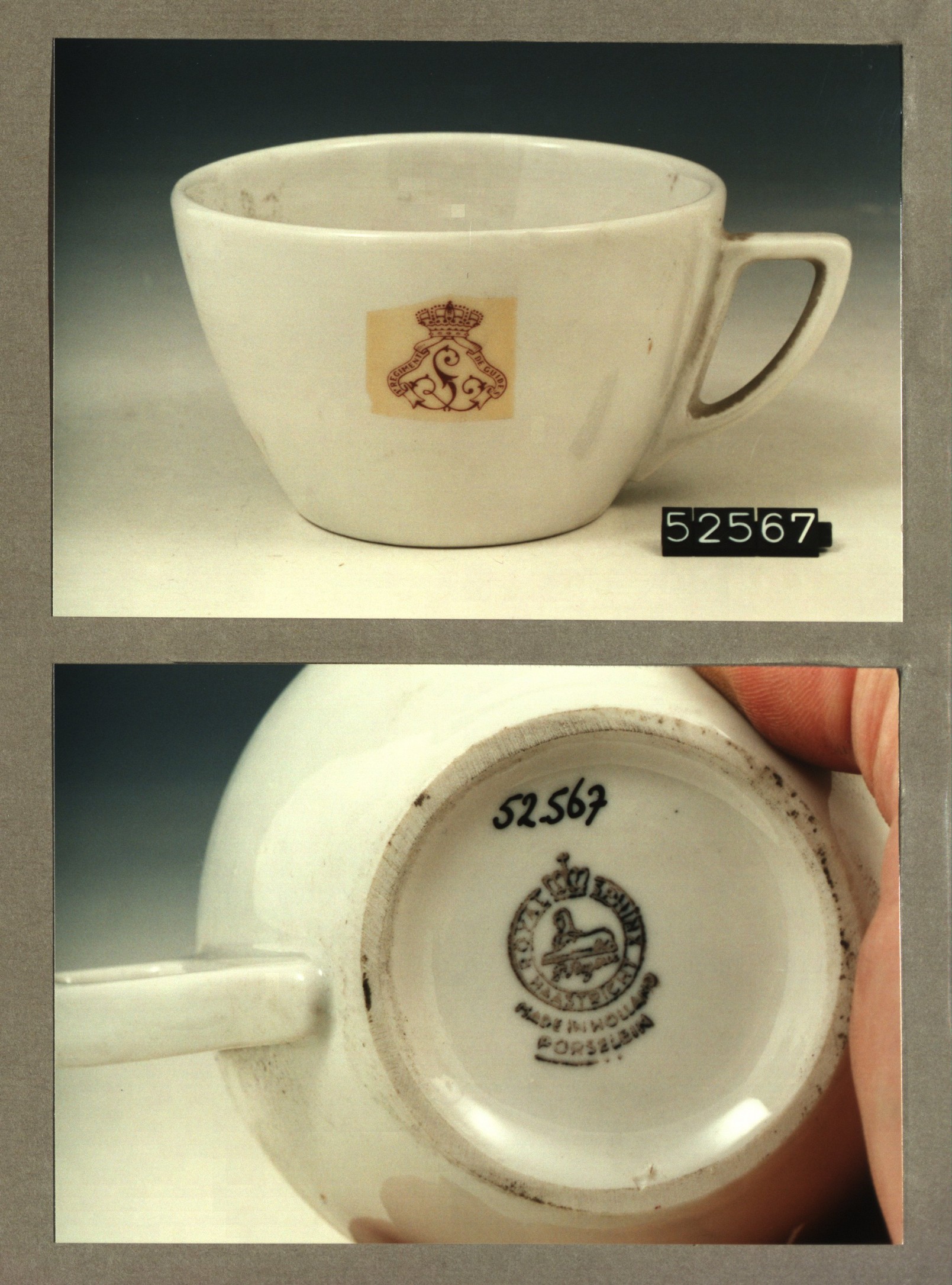 Kop met opschrift, model P met decor 1e Regiment de ...
