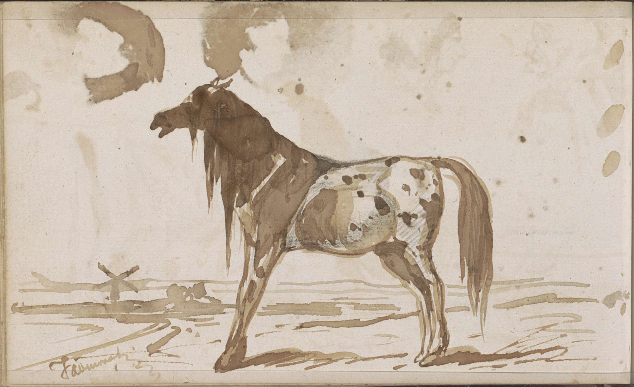 Vlak landschap met een paard