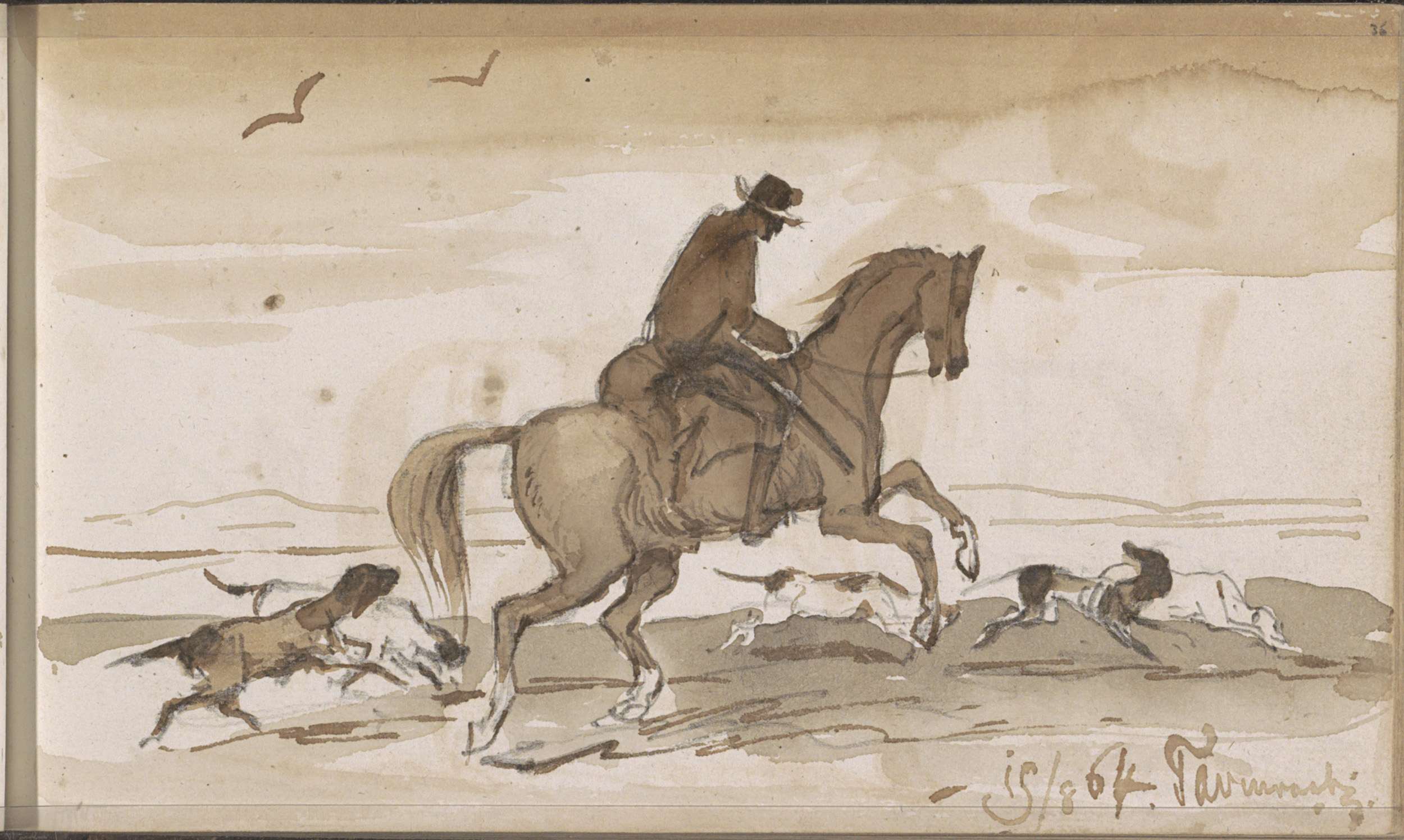 Landschap met een ruiter en rennende honden