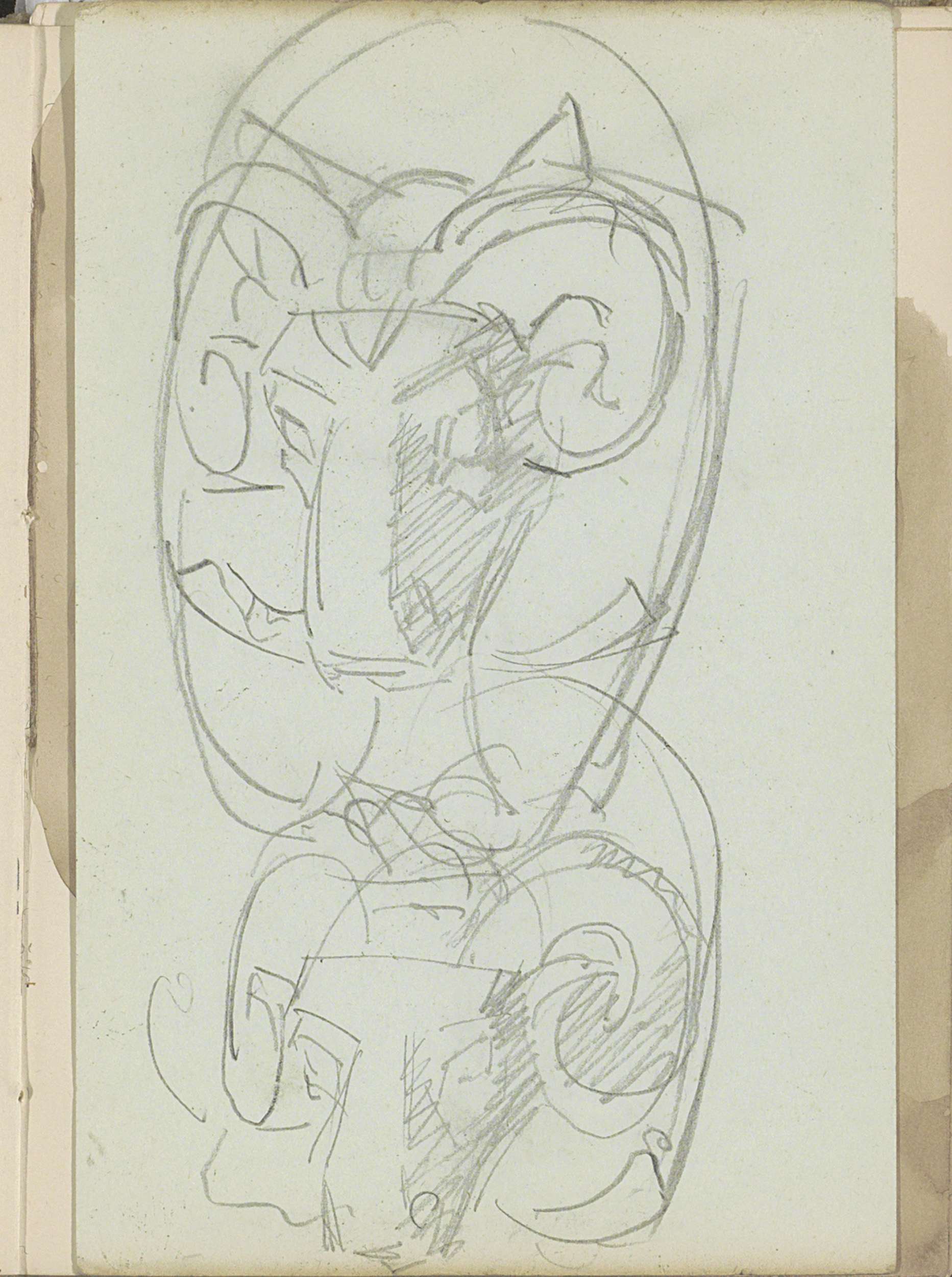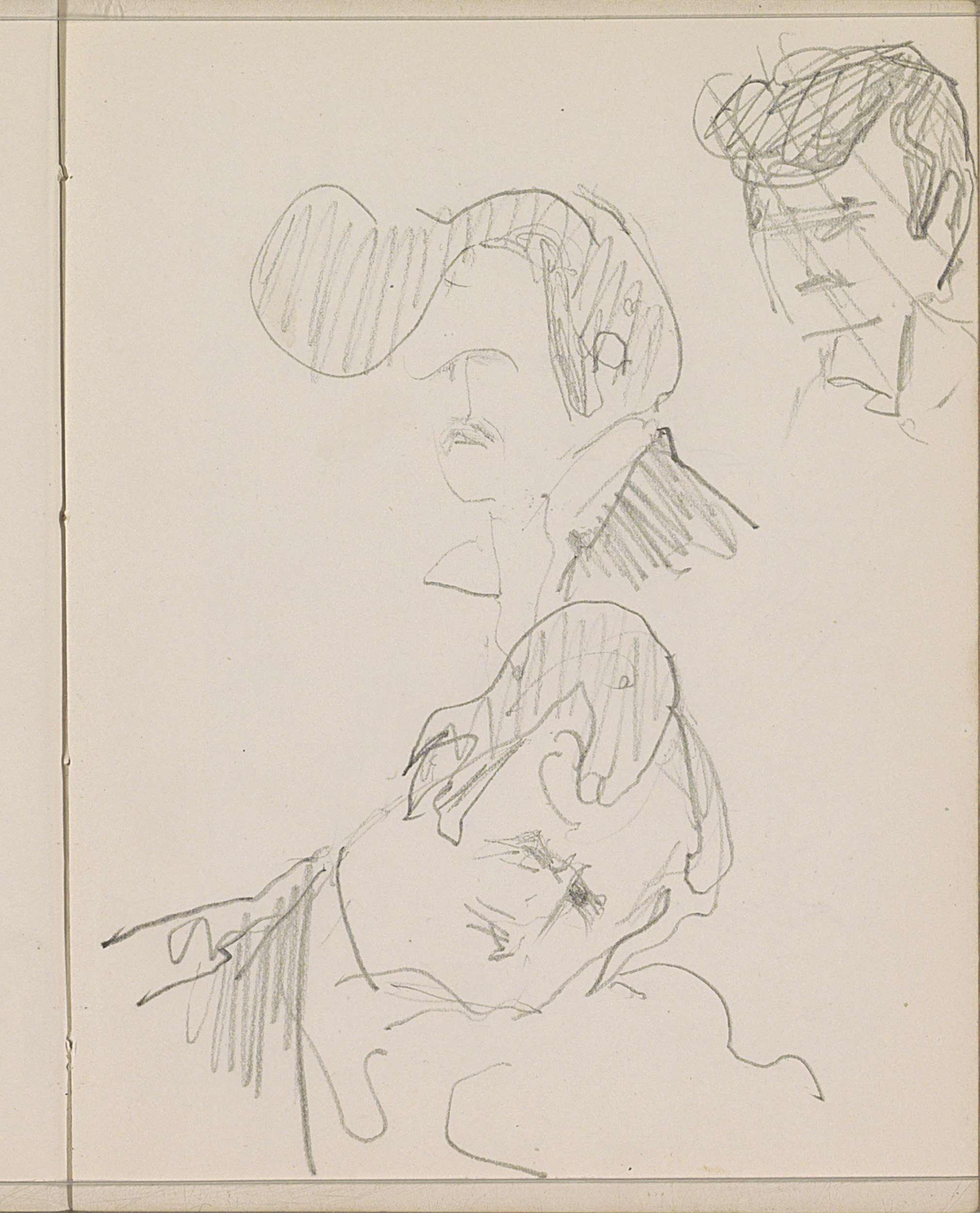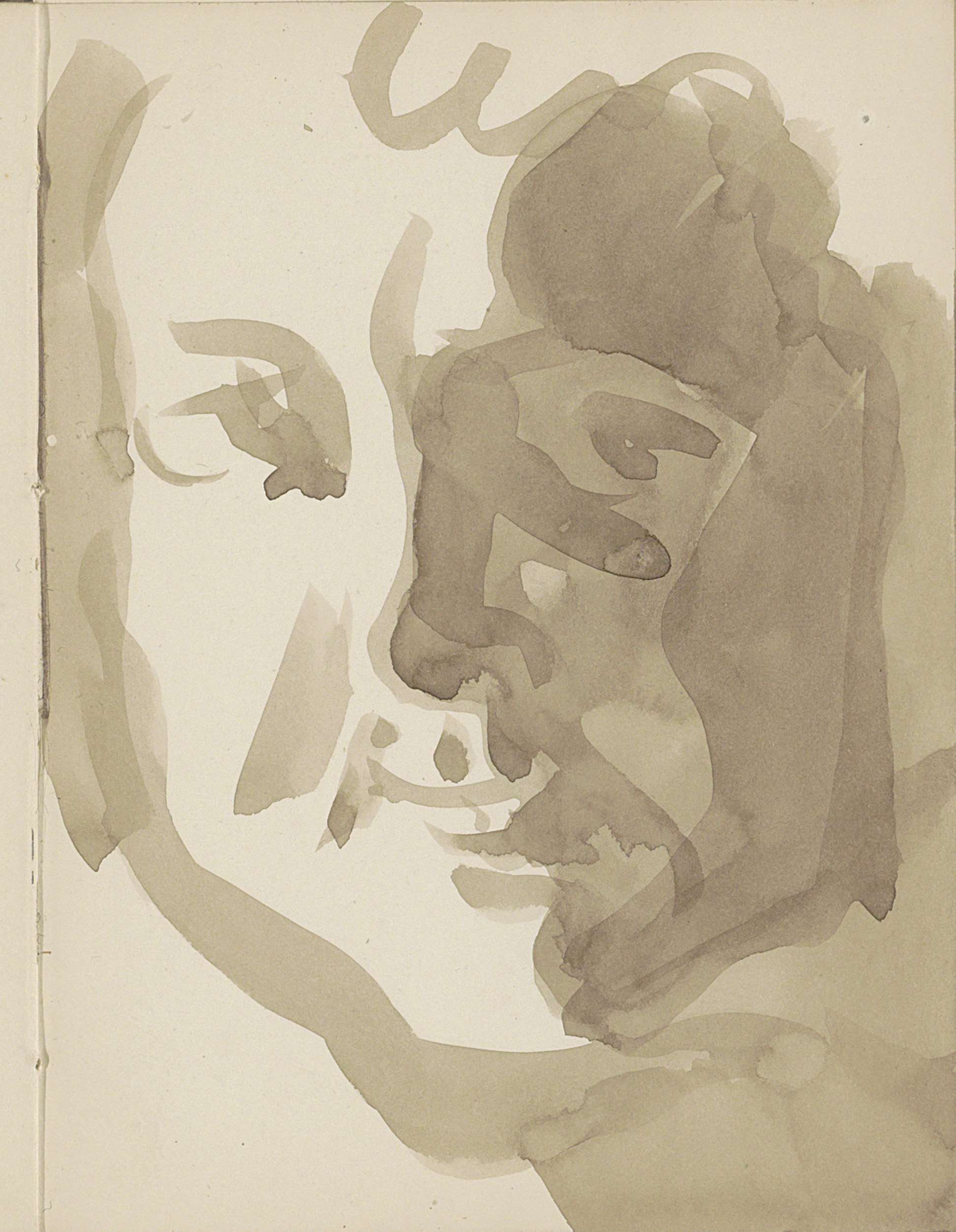 Gehurkte vrouw en een hoofd van een man