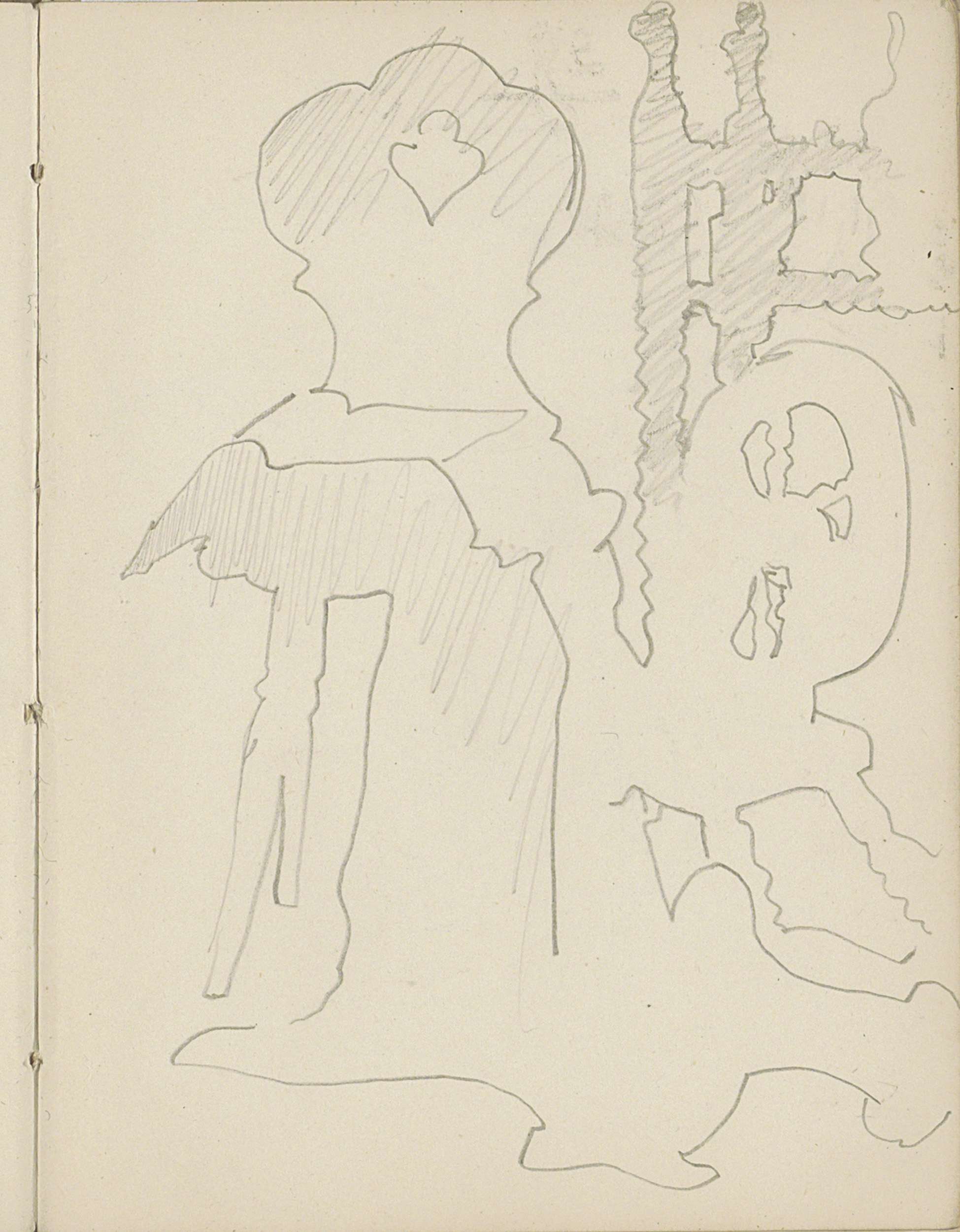 Figuur met opgeheven armen en een naakte vrouw