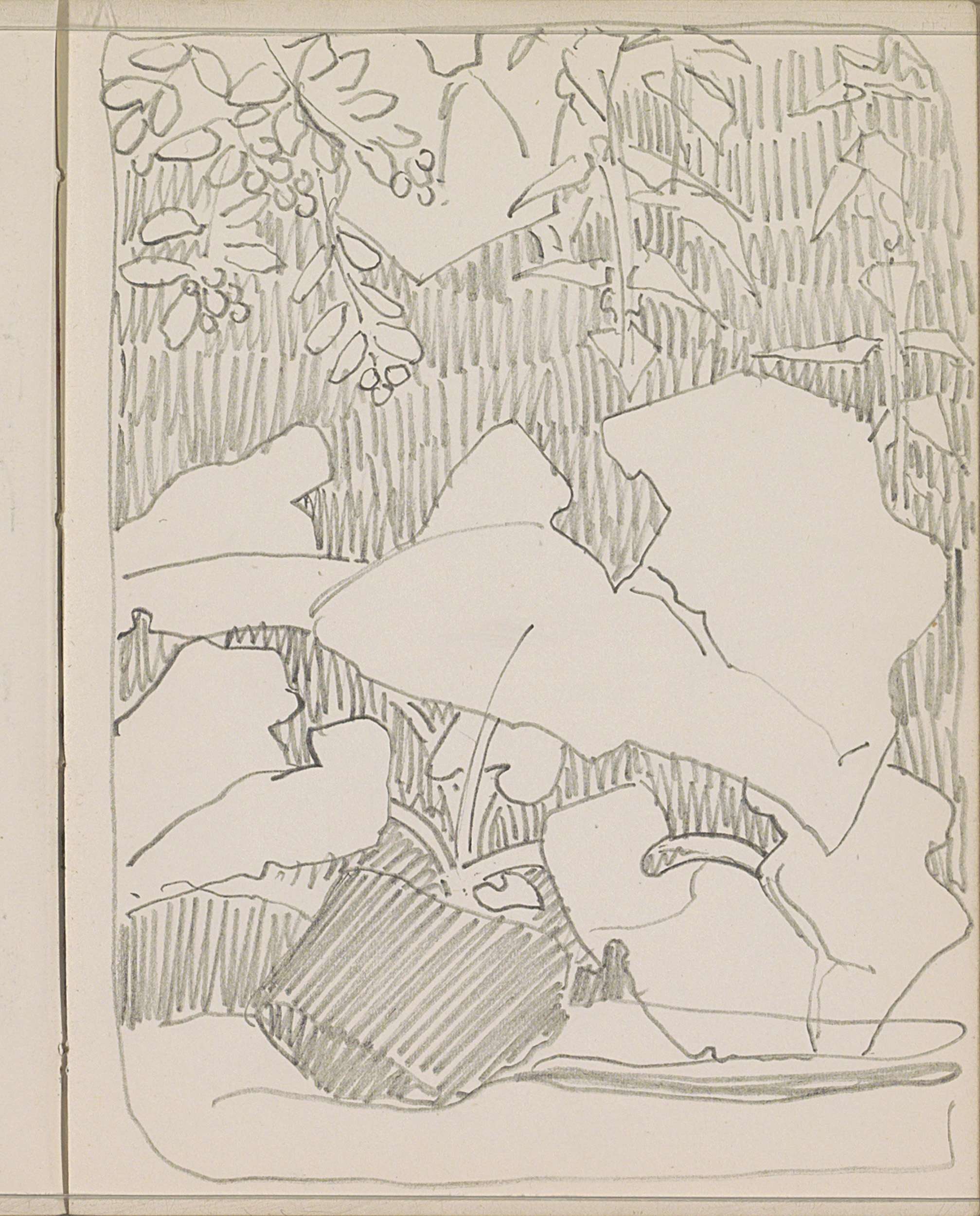 Landschap met bomen en een ornament
