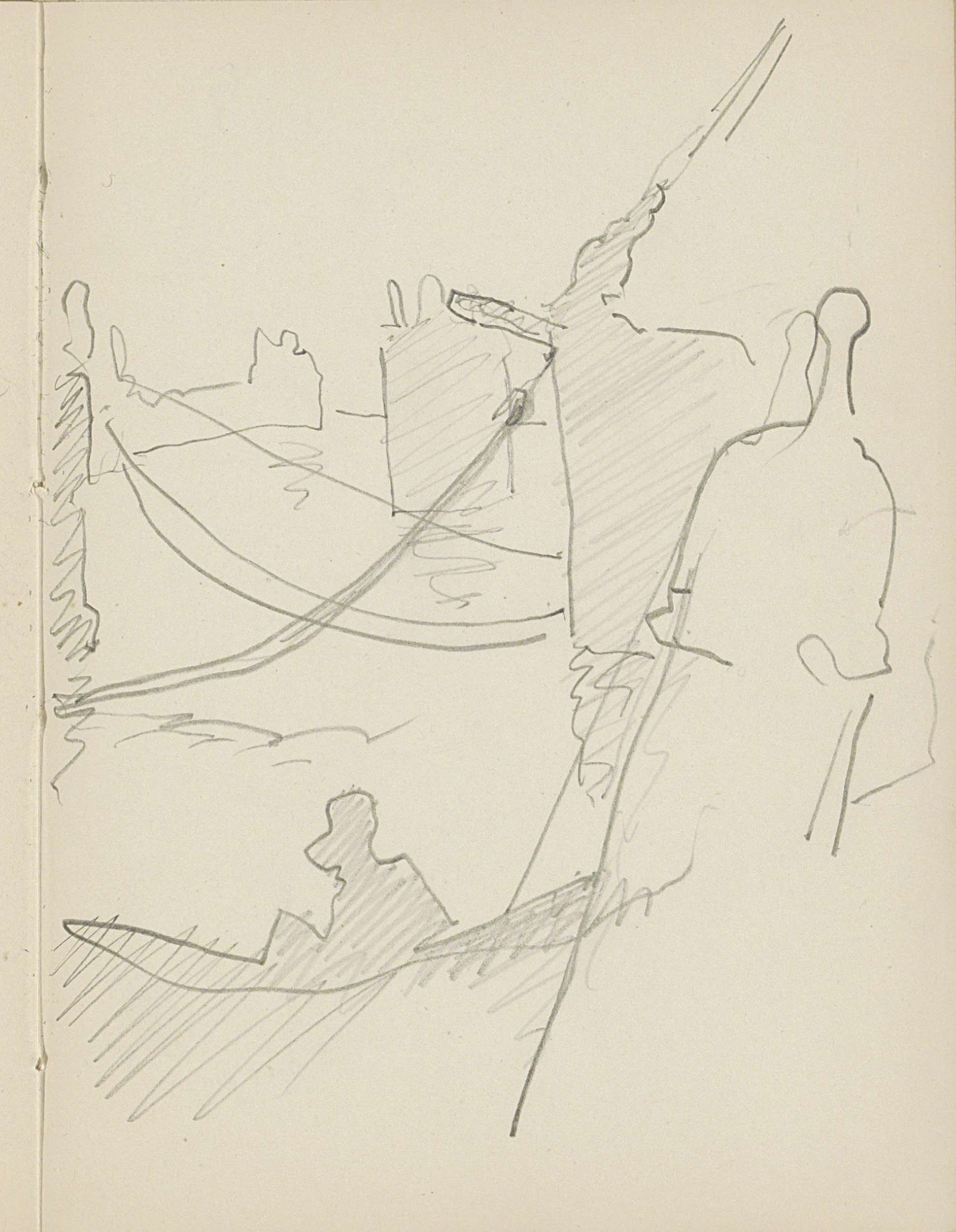 Interieur met een staande figuur naast een liggende ...