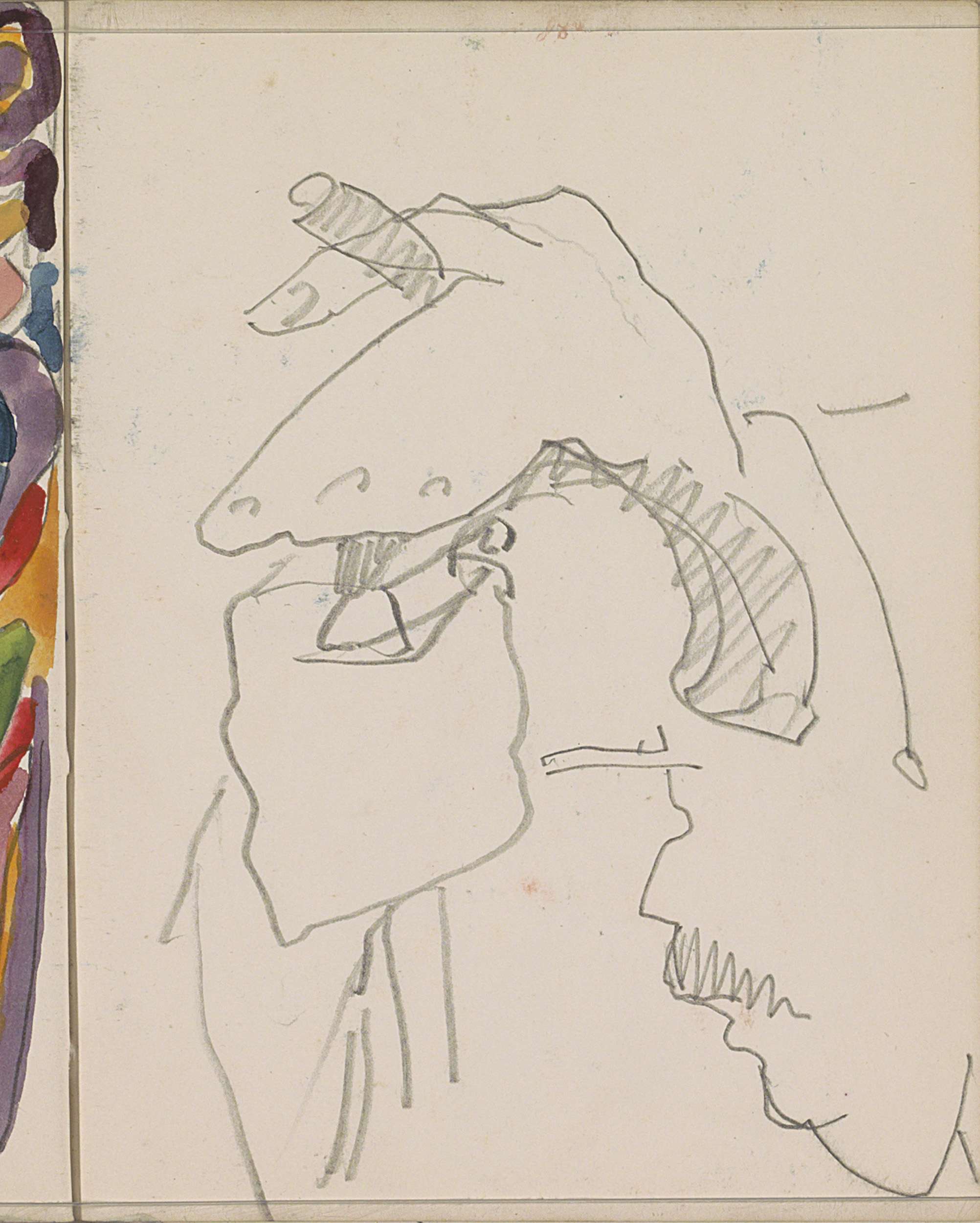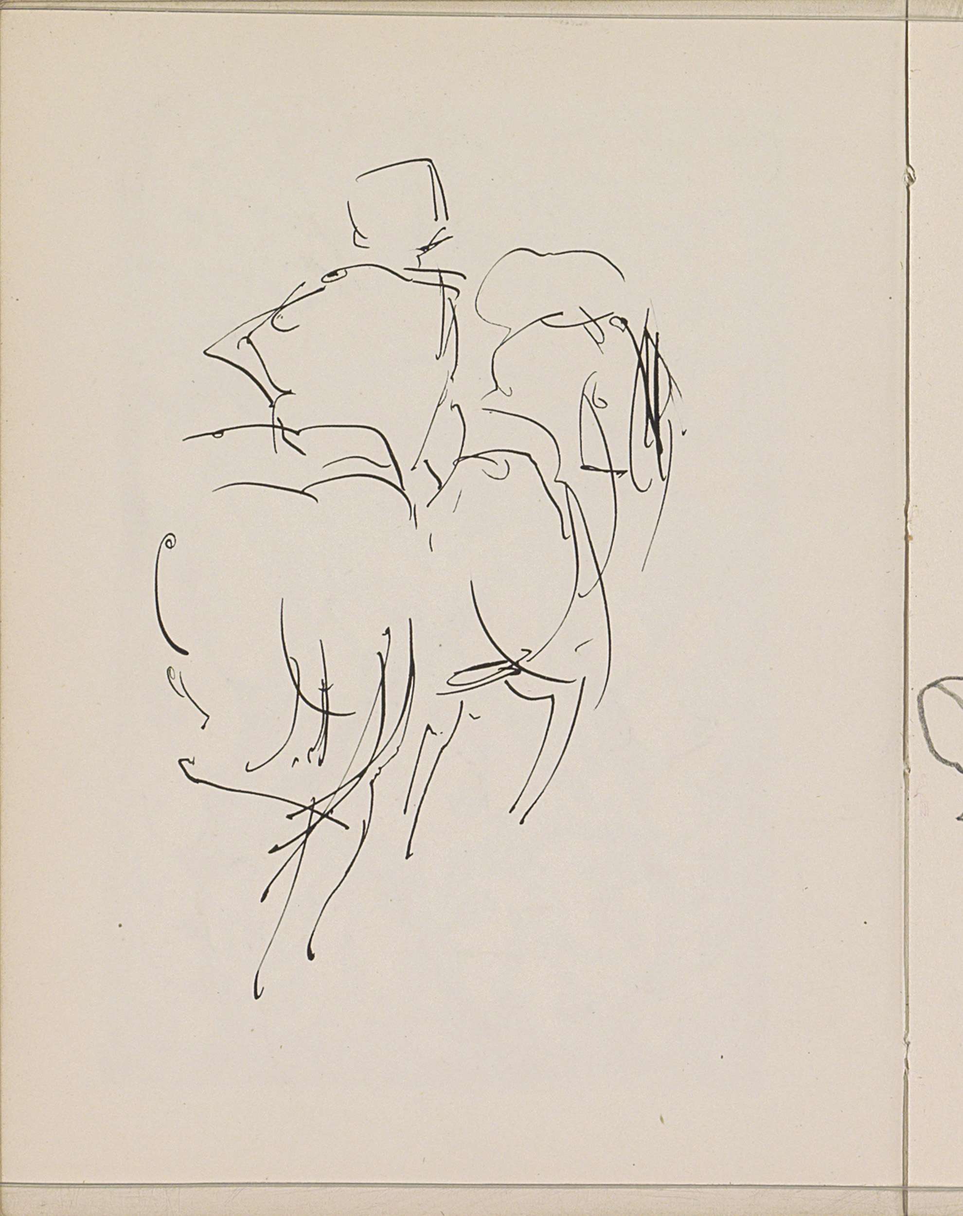 Ruiter en de achterzijde van een naakte figuur