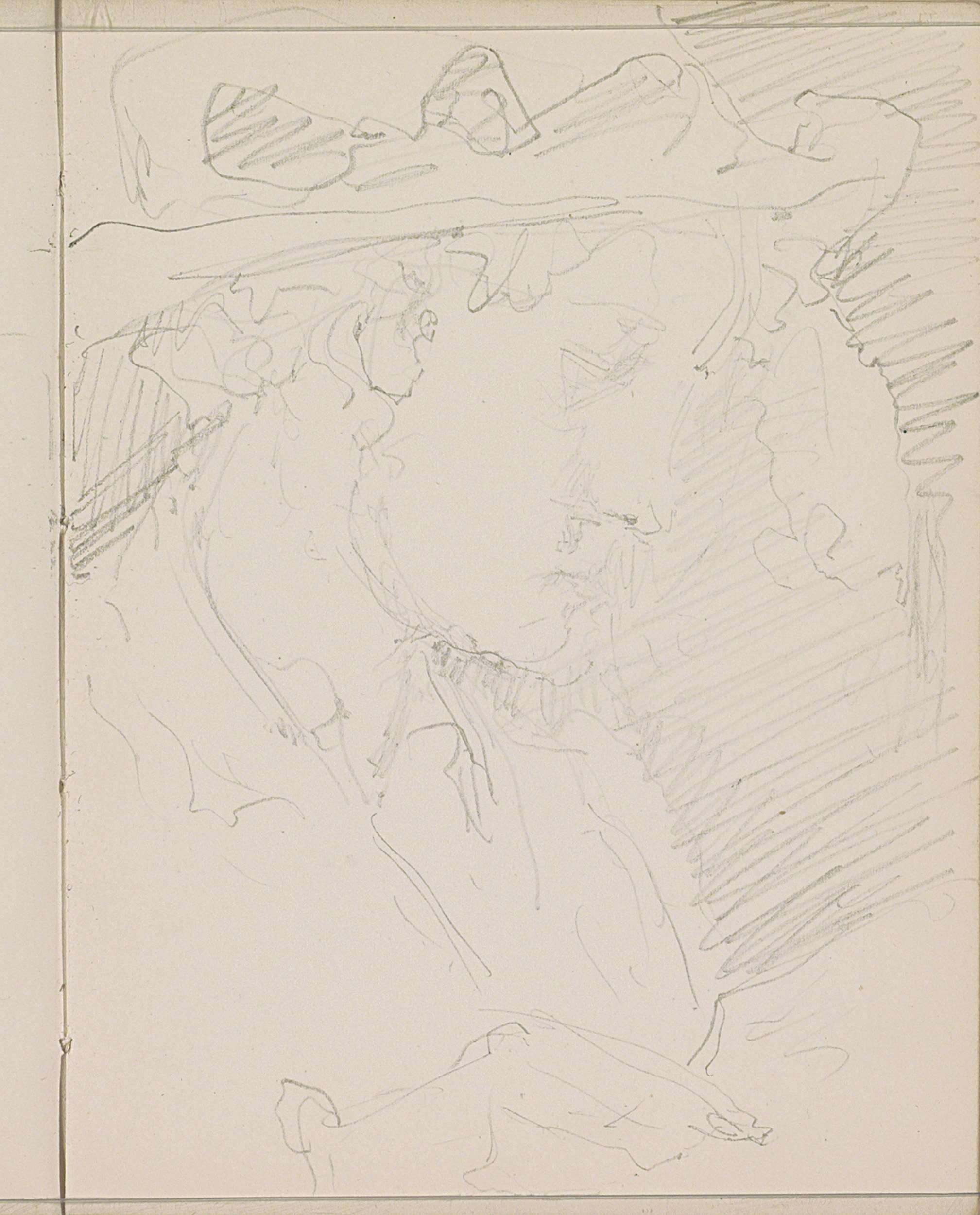 Hoofd van een vrouw en gekruiste voeten