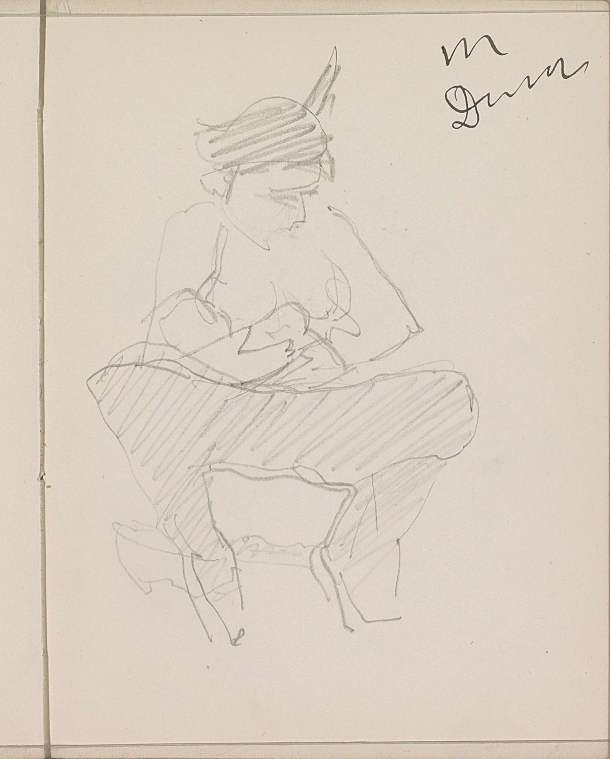 Zittende figuur met gespreide benen