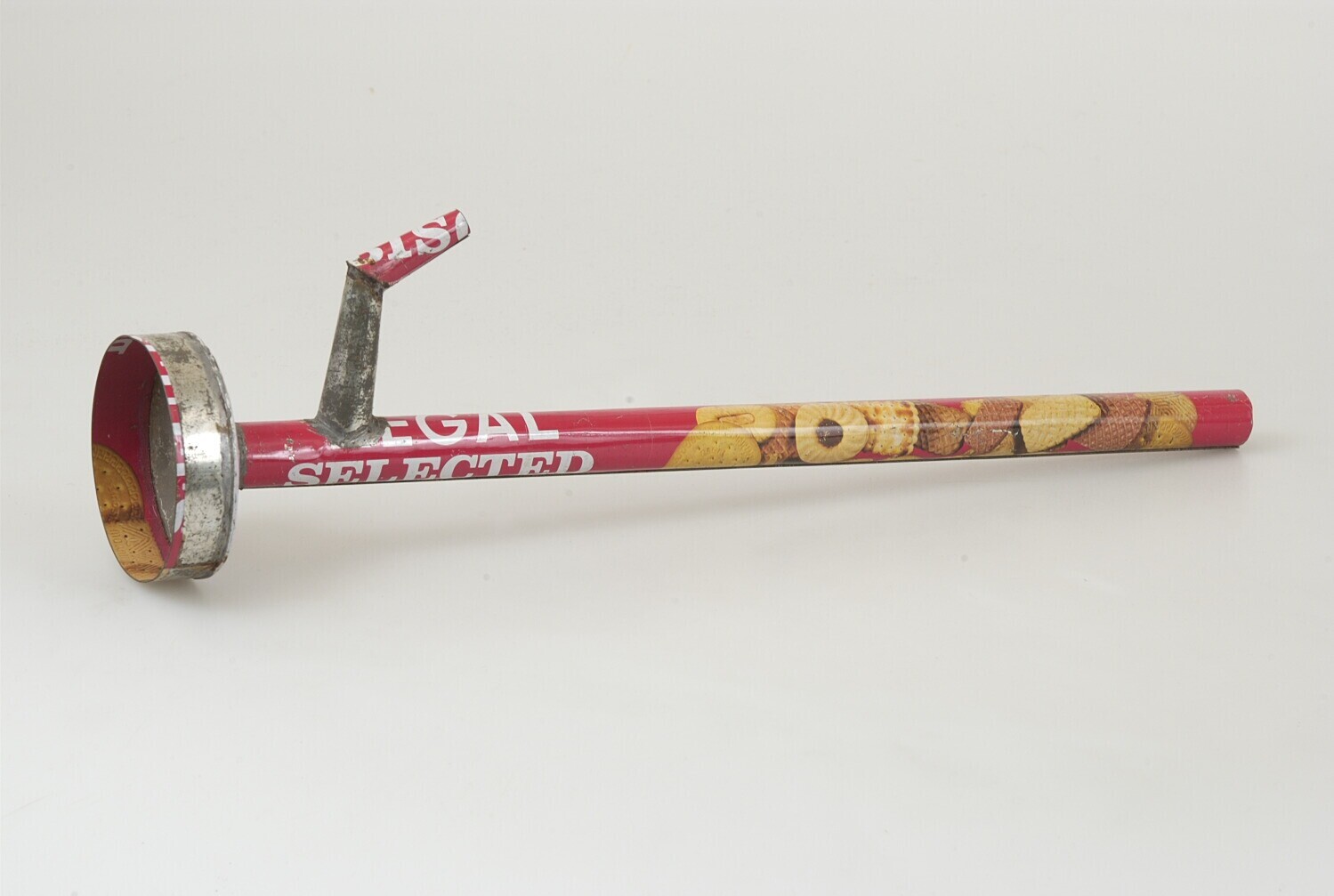 Blikken trechtertje, vervaardigd van een oud Droste ...