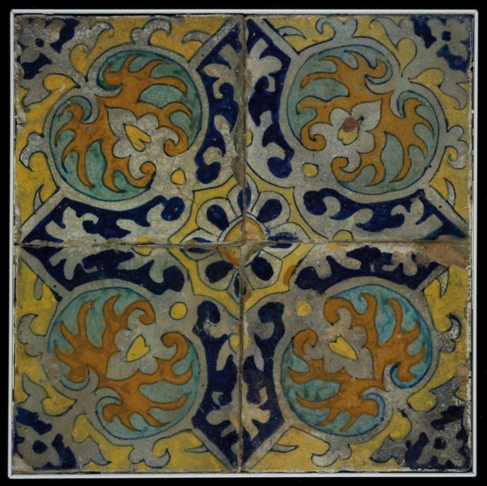 Tegelveld, vier ornamenttegels, diagonaaldecor