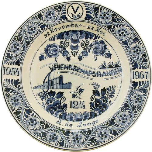 Wandbord: 12-jarig dienstverband A.de Lange, Vredest...