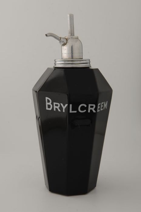 Zwart glazen fles met facetvlakken met metalen dosee...