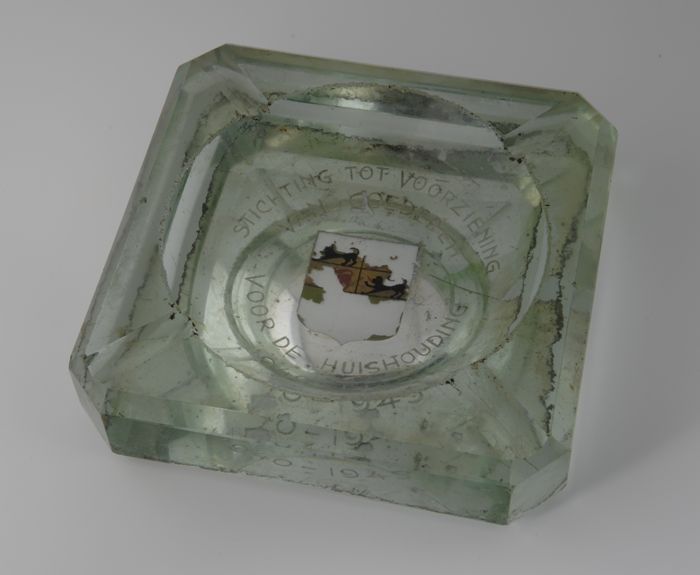 Glazen asbak met wapen Rotterdam en "Stichting tot v...