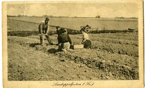 Prentbriefkaart in zwart-wit van het handmatig aarda...