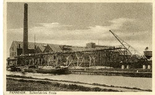 Prentbriefkaart in zwart-wit van de suikerfabriek Fr...