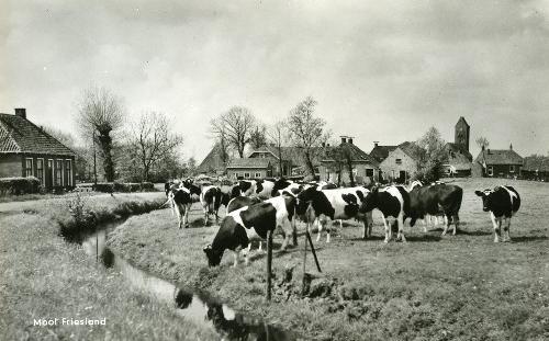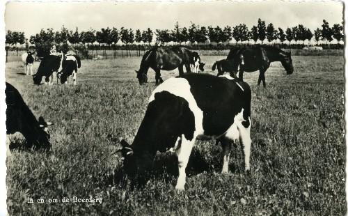 Prentbriefkaart in zwart-wit van koeien in de weide ...