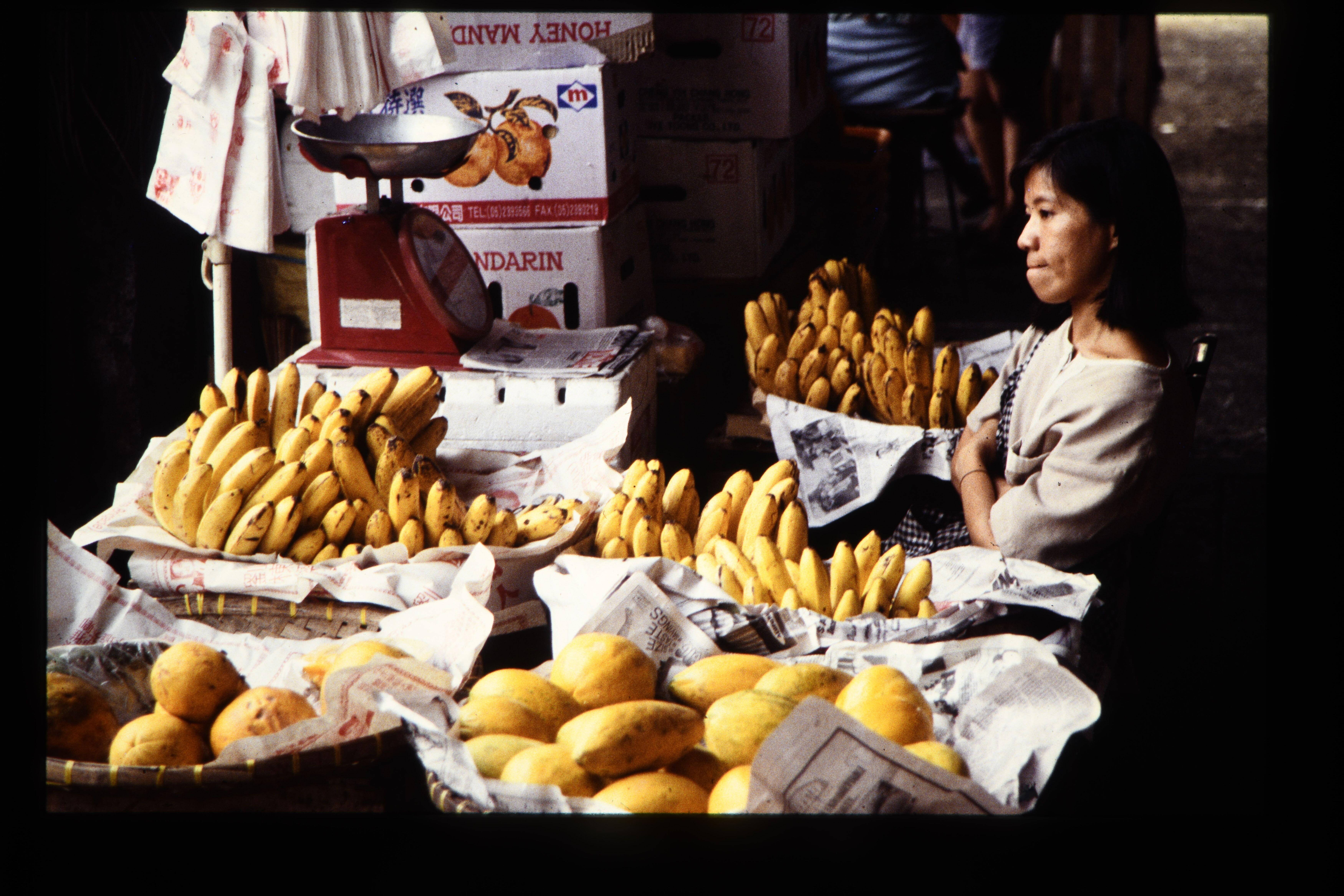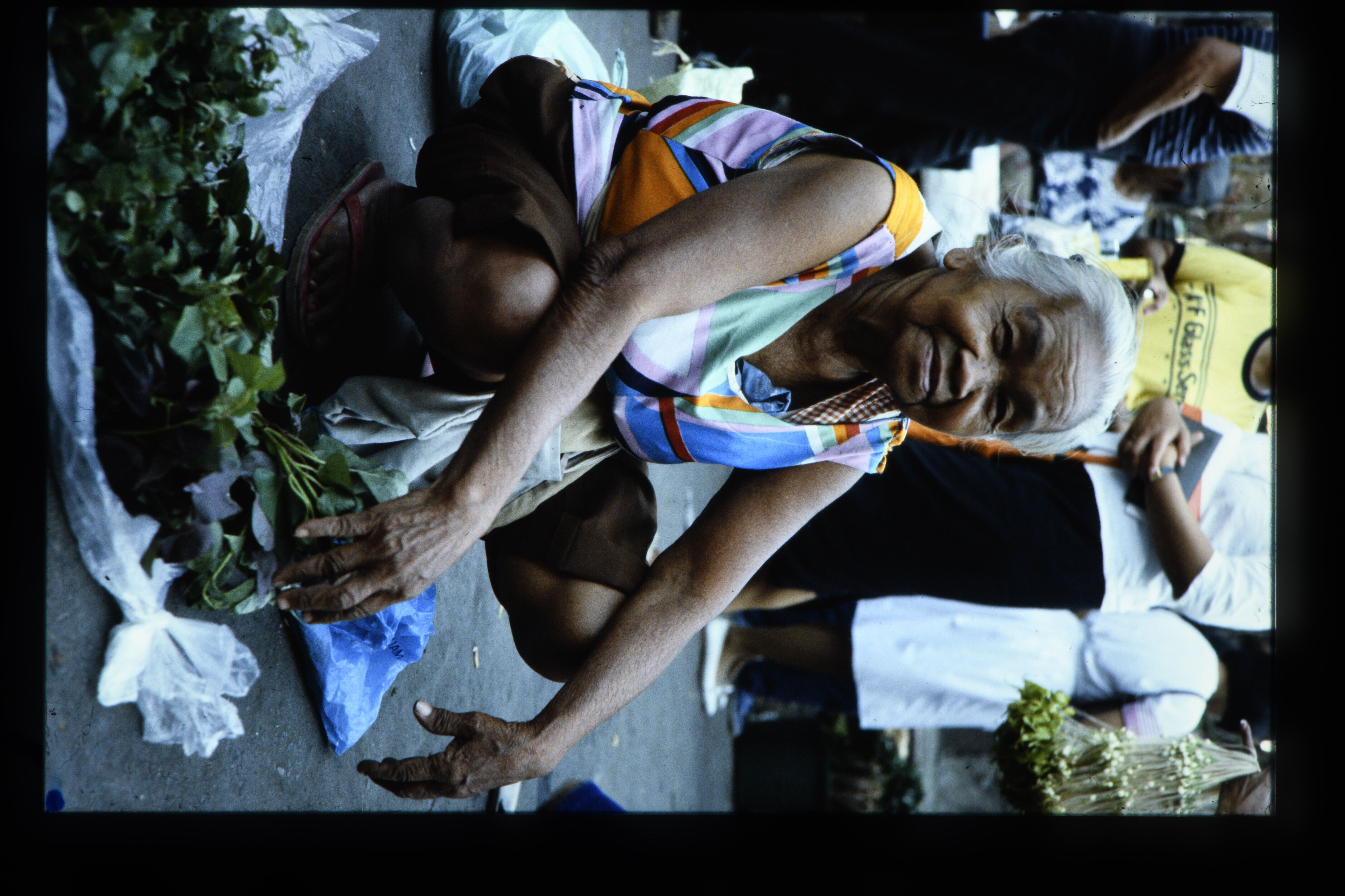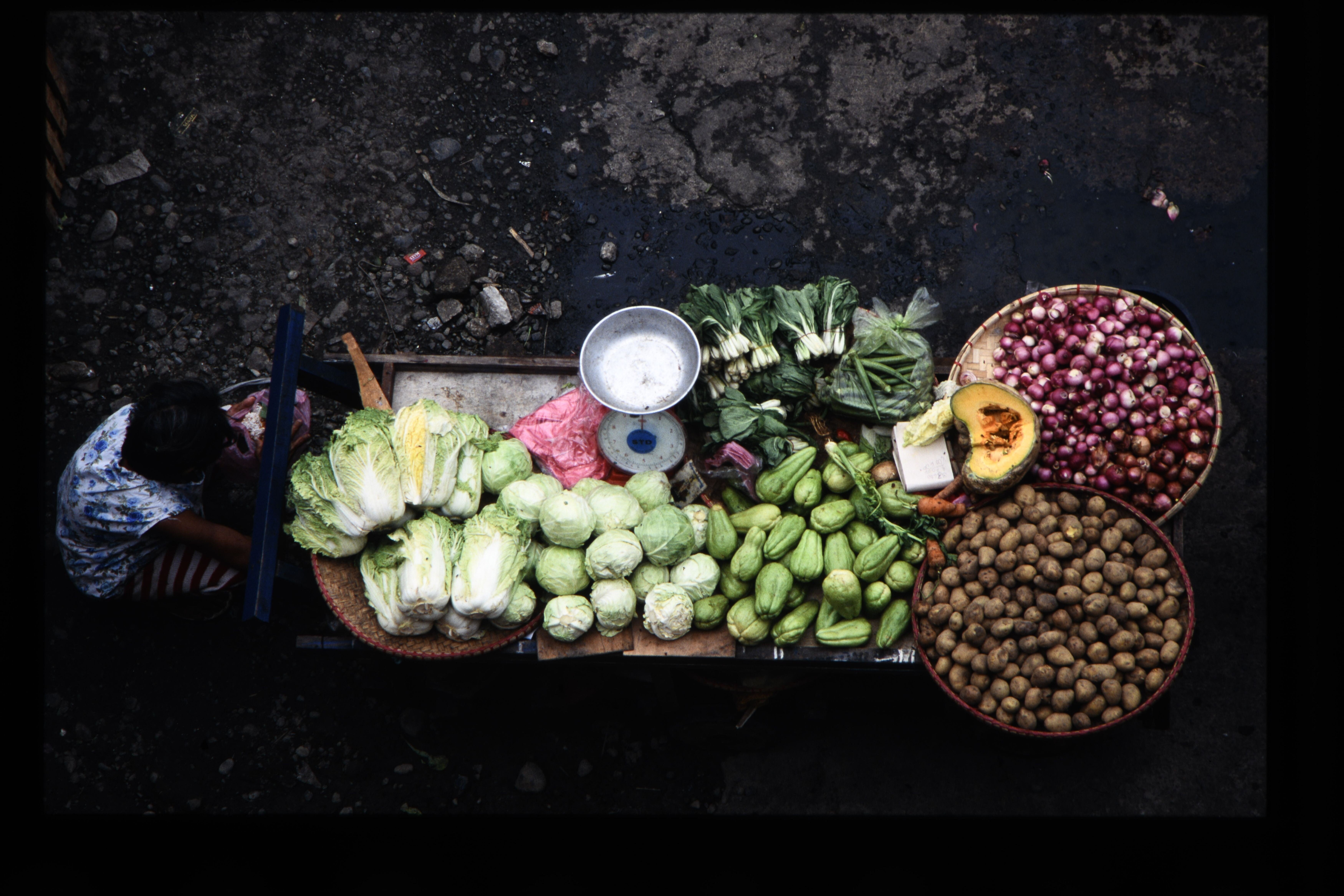 'Vrouw met baby op schoot verkoopt komkommers en aar...